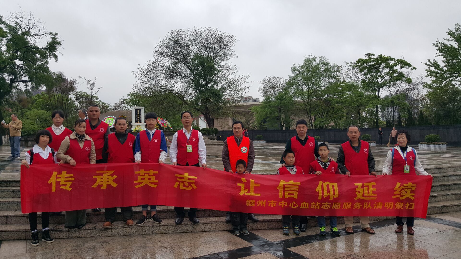 清明当天,赣州市红十字会无偿献血志愿者服务队和赣州市青志协联合开展了以“传承英志,让信仰延续”为主题的祭扫活动。