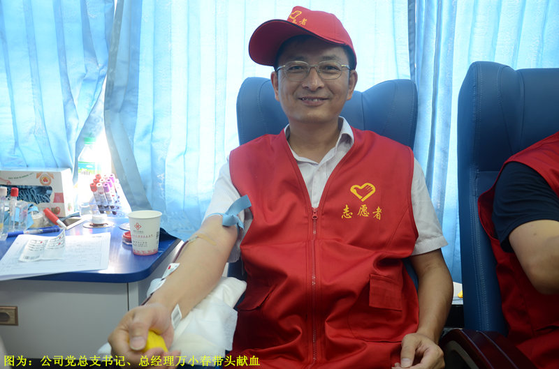 在为期一天的爱心接力中,公司党总支书记、总经理万小春到现场献血并指导工作,看望员工。公司党群部(文明办)、综合部、运营部等工作人员也周密配合做好了服务工作,确保了本次活动的圆满完成。