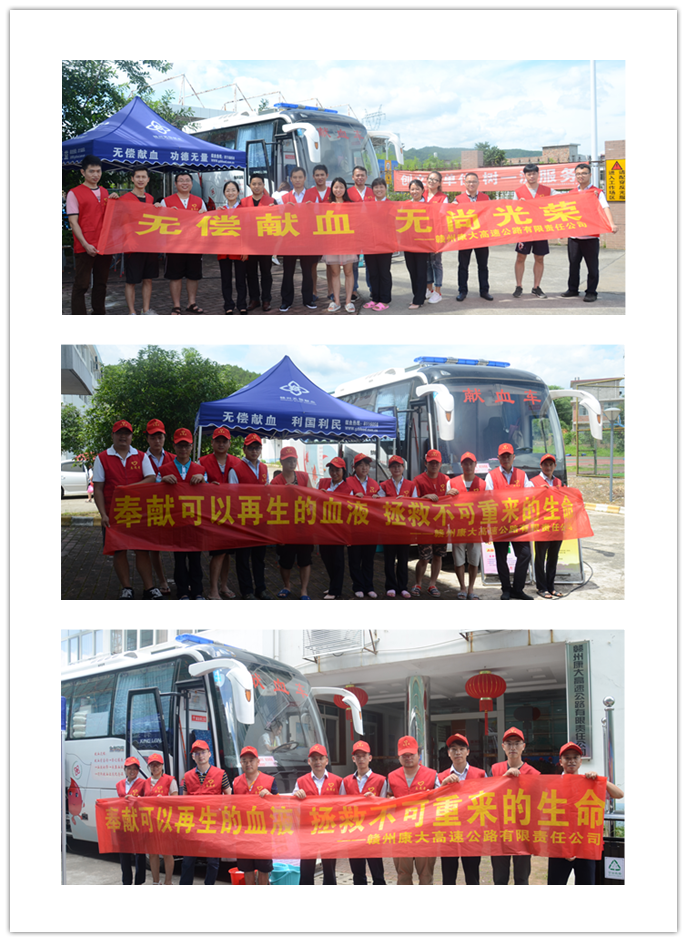 6月20日,赣州市中心血站的无偿献血车依次来到康大高速新城所、梅关所和机关本部,每到一处人头攒动,爱意融融,员工们早早在采血车前排起了长龙,纷纷按照医务人员的要求,认真填写登记表格、配合血站工作人员进行献血前的各项检查,待初检合格后陆续登上献血车开始献血。在各部门的通力配合下,公司37名干部员工献血量共计12700cc,超额完成预期目标。