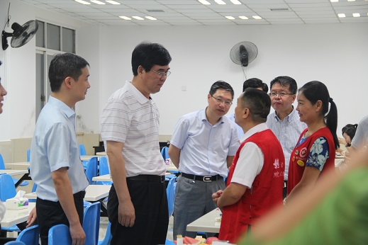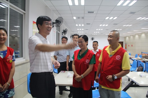 7月7日晚8点,江西省副书记、赣州市委书记李炳军一行来到赣州市中心血站食堂,看望及慰问刚完成机采献血和志愿服务活动正准备吃工作餐的6名无偿献血志愿者,并与他们一一握手。