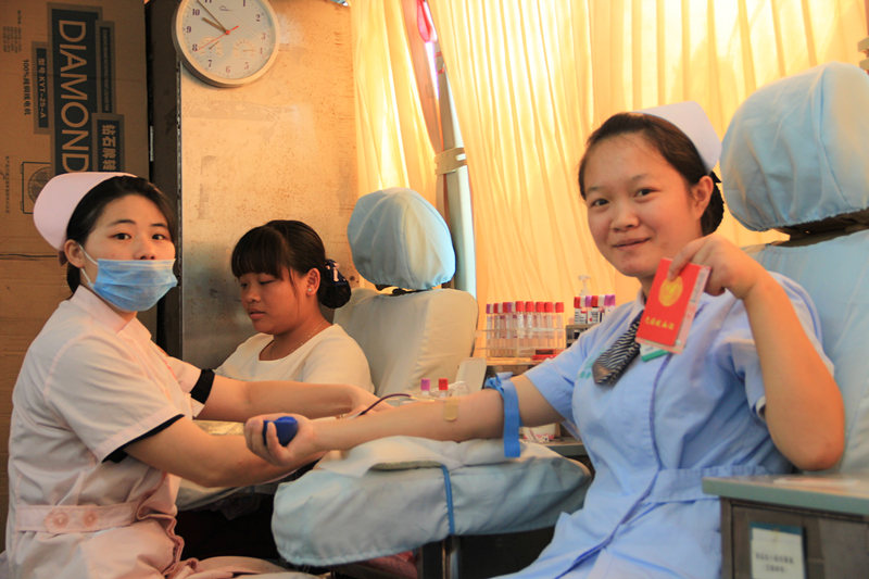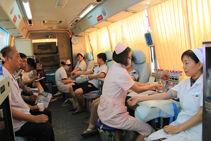 献血车上大家耐心等待,我们的护士妹妹忙的不可开交