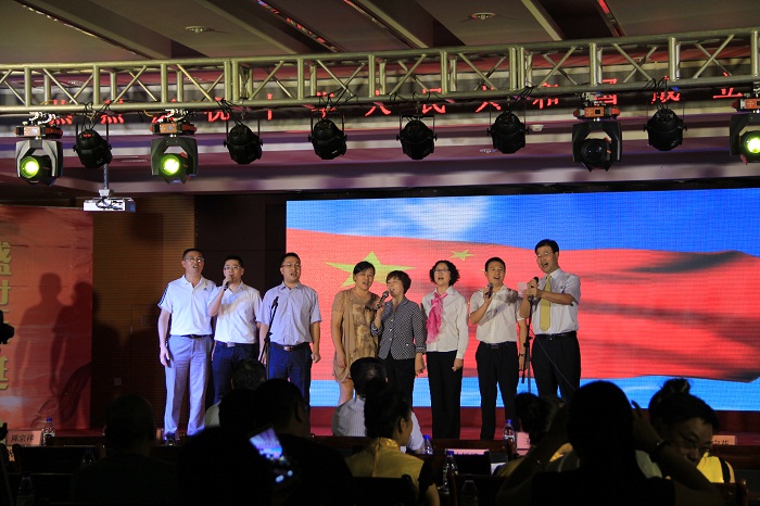 三点联欢会正式开始,市统战部副部长黄声兰向所有参会人员传达了我市第五次党员代表大会的会议精神,接着由农工党市委会、市无党派知识分子联谊会、无偿献血志愿者选送节目为在场人员带来一场视觉的盛宴,精彩纷呈让人目不暇接。由市中心血站选送的小组唱《国家》更是将现场观众的爱国之情点燃到新的高度,在快板节目《传承美德助力生命架金桥》中,贴切的将无偿献血助力生命、感恩人间大爱之心灌注于朗朗上口的快板中,在最后的大合唱《歌唱祖国》中全场观众自发的起立与台上的演员一起高声歌唱,将联欢会推向新的高潮。