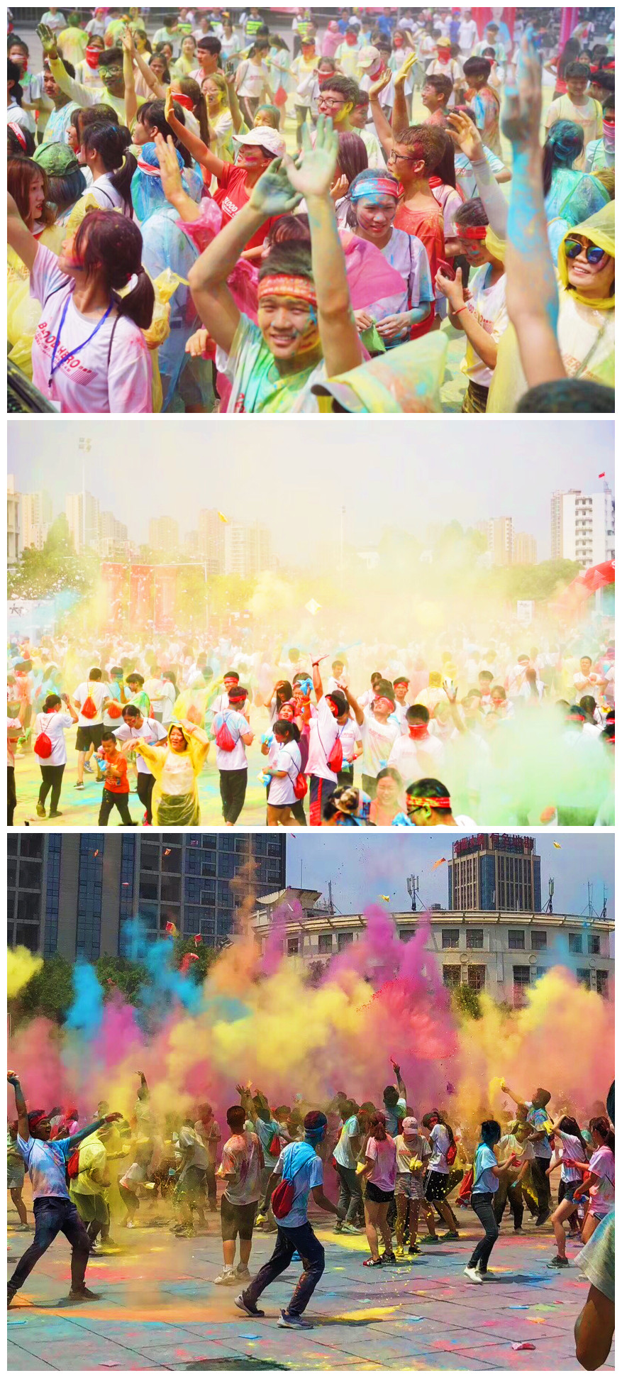 除大学生代表,本届热血跑还有来自社会各界十一支志愿者方阵队伍参与。开跑口号一响,志愿者们穿过四扇彩虹拱门开启了5公里的健康热血跑。大家在跑步过程中互相涂抹粉彩,合影留念。跑步结束后,舞台上文艺节目精彩纷呈,活动现场热闹非凡,红白T恤,彩虹假发,墨镜,涂面油彩,漫天飞舞的泡泡和粉彩让活动现场瞬间装扮成了欢乐的海洋。在舞台一侧,爱心跑者在活动现场“生生不息”主题大字上系上了印有“blood running”字样的鲜艳红丝带,蓝天、白云、阳光下,“生生不息”在红丝带衬映下熠熠生辉,让本次活动主题再一次得到升华,吸引了不少爱心跑者的驻足留影。
