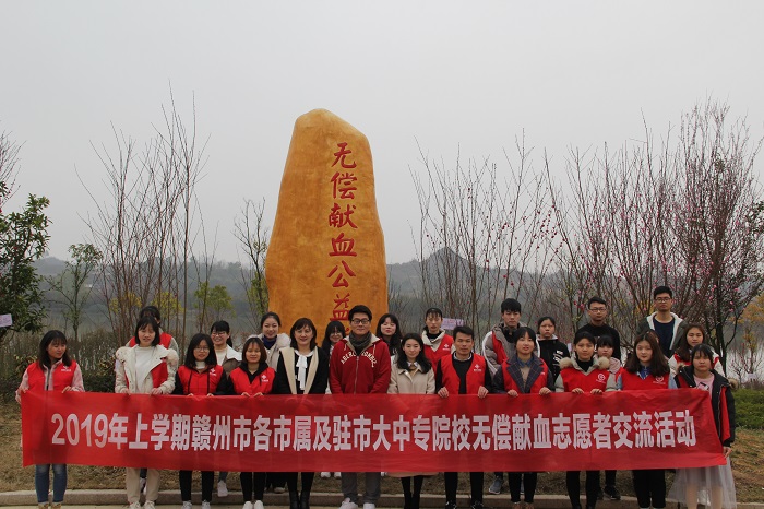 赣州市中心血站于2019年3月2日在位于赣州市章江足球公园的无偿献血公益爱心林开展“2019年上学期赣州市各市属及驻市大中专院校无偿献血志愿者交流活动”。