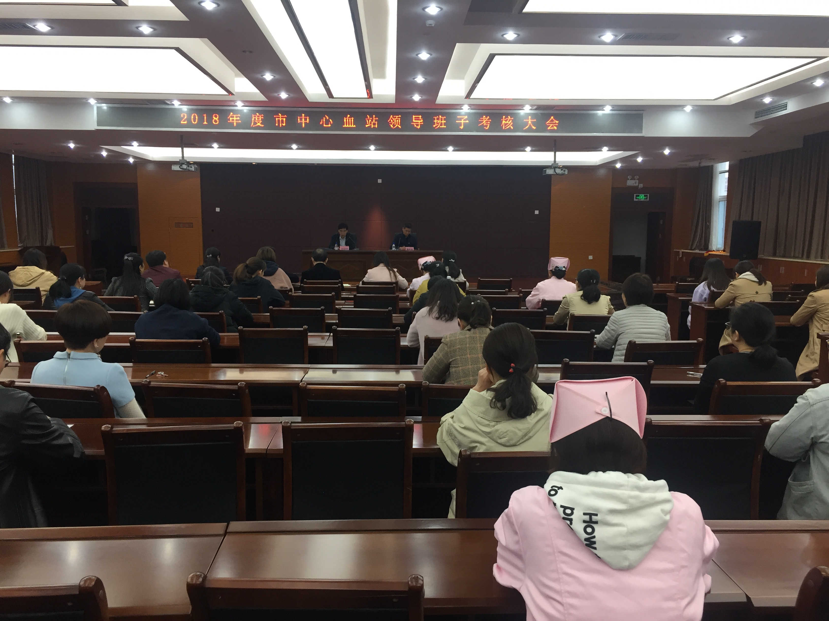 4月11日上午,赣州市中心血站召开2018年度领导班子和班子成员考核会,以市卫生健康委党组成员、副主任郑保平同志为组长、市纪委驻市卫健委副县级纪检员刘宗信同志、市卫生健康委人事科陈剑平和赵晓琳同志组成的考核组一行4人莅临市中心血站进行考核和测评。考核组采取民主测评、个别谈话、统计报告等方式,全面考核了2018年度市中心血站领导班子和班子成员各项工作目标的落实情况,我站50余名干部职工参加会议。