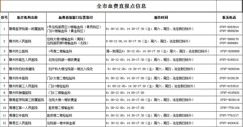 据悉,为提升献血者献血体验,保障献血者权益,为献血者提供更加便利的用血后报销服务,今年年初,赣州市在原有21家开通用血直报窗口医院的基础上,新增了32家医院开通血费直报窗口。文章开头中提到的市肿瘤医院就是32家新增血费直报窗口的其中之一。该窗口的开通,给用血后的献血者及其直系亲属提供了一站式的服务,免去了其为血费报销款项来回奔波之苦。
