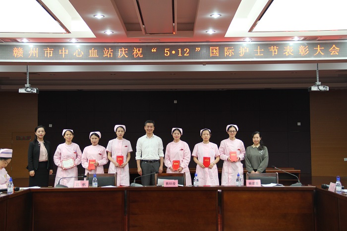 会上,副站长江帆宣读了《赣州市中心血站关于表彰2018~2019度优秀护士的决定》,随后举行了颁奖仪式,刘婷、李文燕、吴瑶瑶、赖丽、刘园青、蓝咪等6名同志被授“赣州市中心血站2018~2019度优秀护士”荣誉称号,站领导熊烜俊、赖建秀、江帆为获奖护士颁发了荣誉证书。