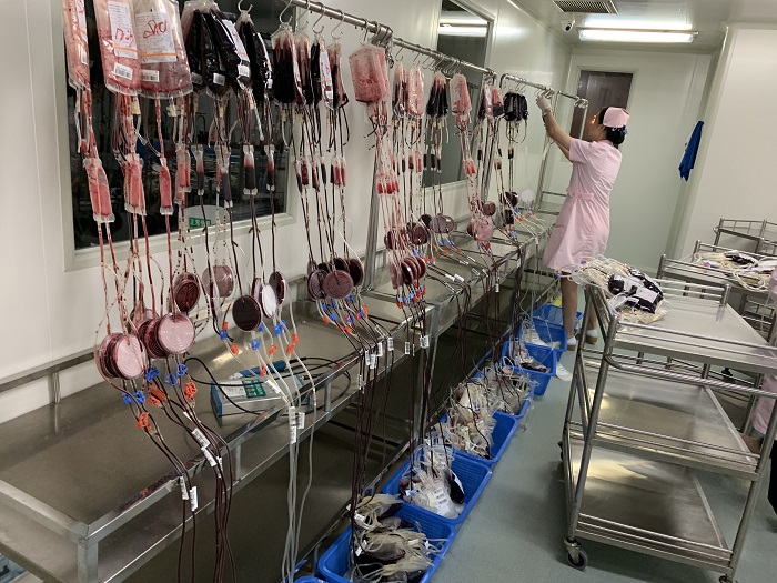 全血采集交接至待检库后,成分科的姑娘们工作也开始繁重起来,她们需要把全血进行过滤、离心、分离、制备等,整个工作流程都要十分的严谨,容不得丝毫的马虎,血液质量安全关乎生命。