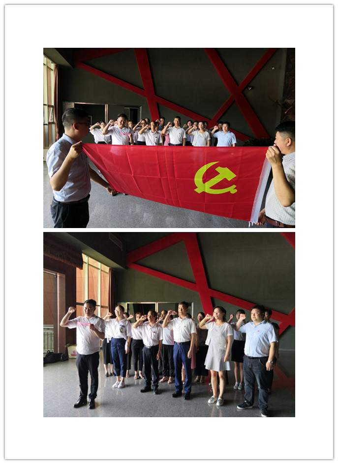 在中央苏区反围剿战争纪念馆,全体党员庄严肃穆地面对党旗,重温入党誓词,不忘初心使命。