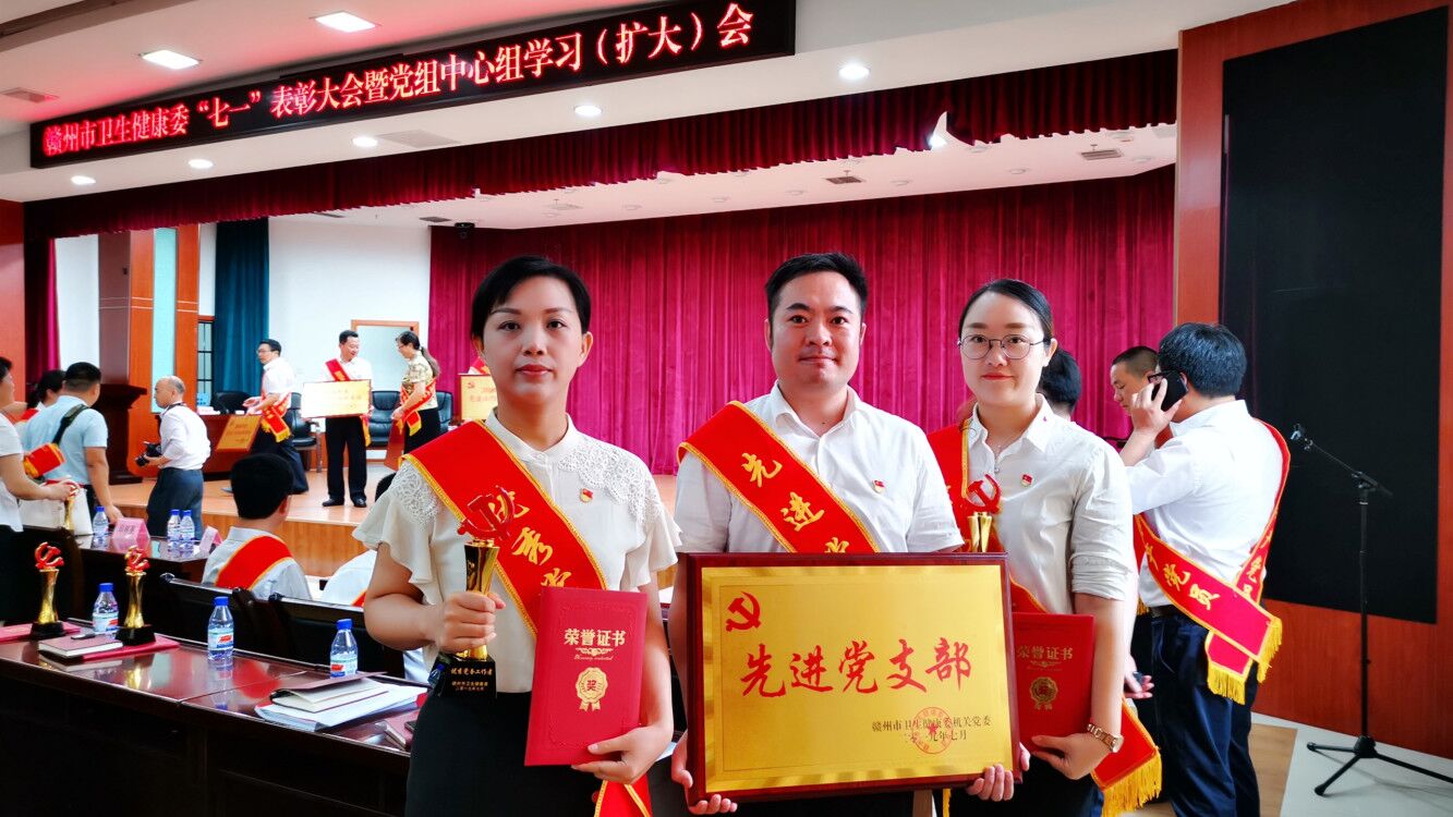 在赣州市卫生健康委“七一”表彰大会暨党组中心组学习(扩大)会上,我站党支部被授予 “先进党支部”荣誉称号,江帆同志获得“优秀党务工作者”的荣誉称号,孙杰、何燕琴同志获得“先进党员”荣誉称号。
