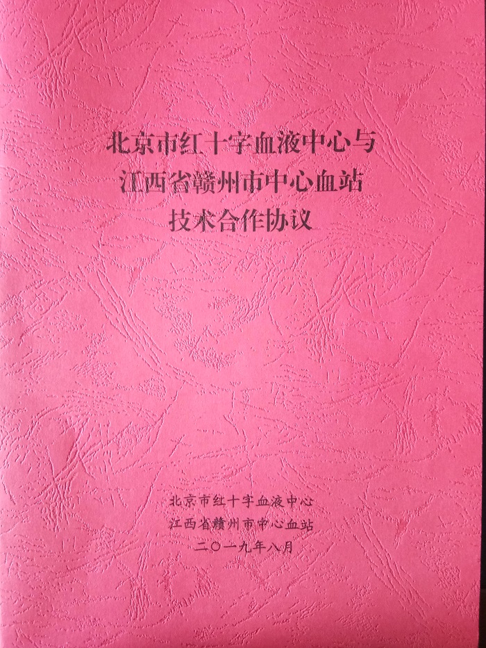为贯彻落实《北京市人民政符、江西省人民政府进一步深化京赣合作框架协议》和《江西省发展改革委关于印发<赣京合作2019年工作要点>的通知》精神,结合市卫健系统关于开展“拉高标杆争创一流”活动的具体要求,日前,我站党支部书记、站长熊烜俊,副站长赖建秀等赴北京市红十字血液中心协商合作事宜,8月13日在北京签订了《北京市红十字血液中心与江西省赣州市中心血站技术合作协议》,明确了双方今后的合作内容、合作范围及合作机制等相关合作事项。