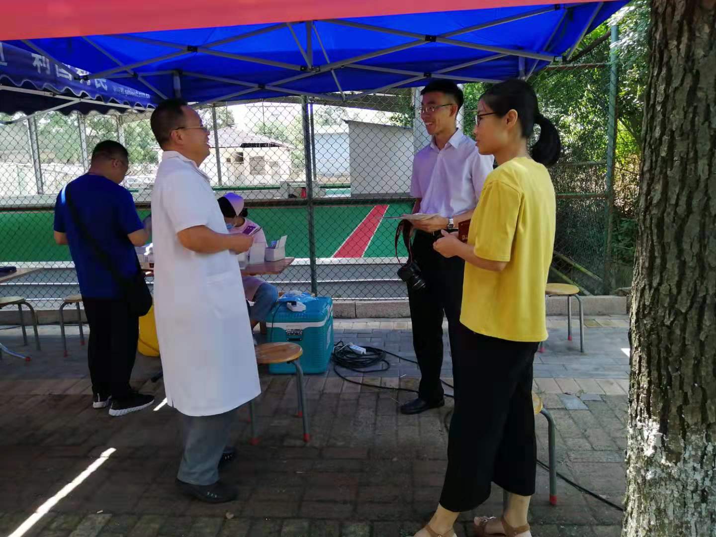 炎热酷暑,谢军医生在室外为献血者体检,为了给献血者多一丝凉意,他默默地把风扇转向了正在测量血压的献血者。