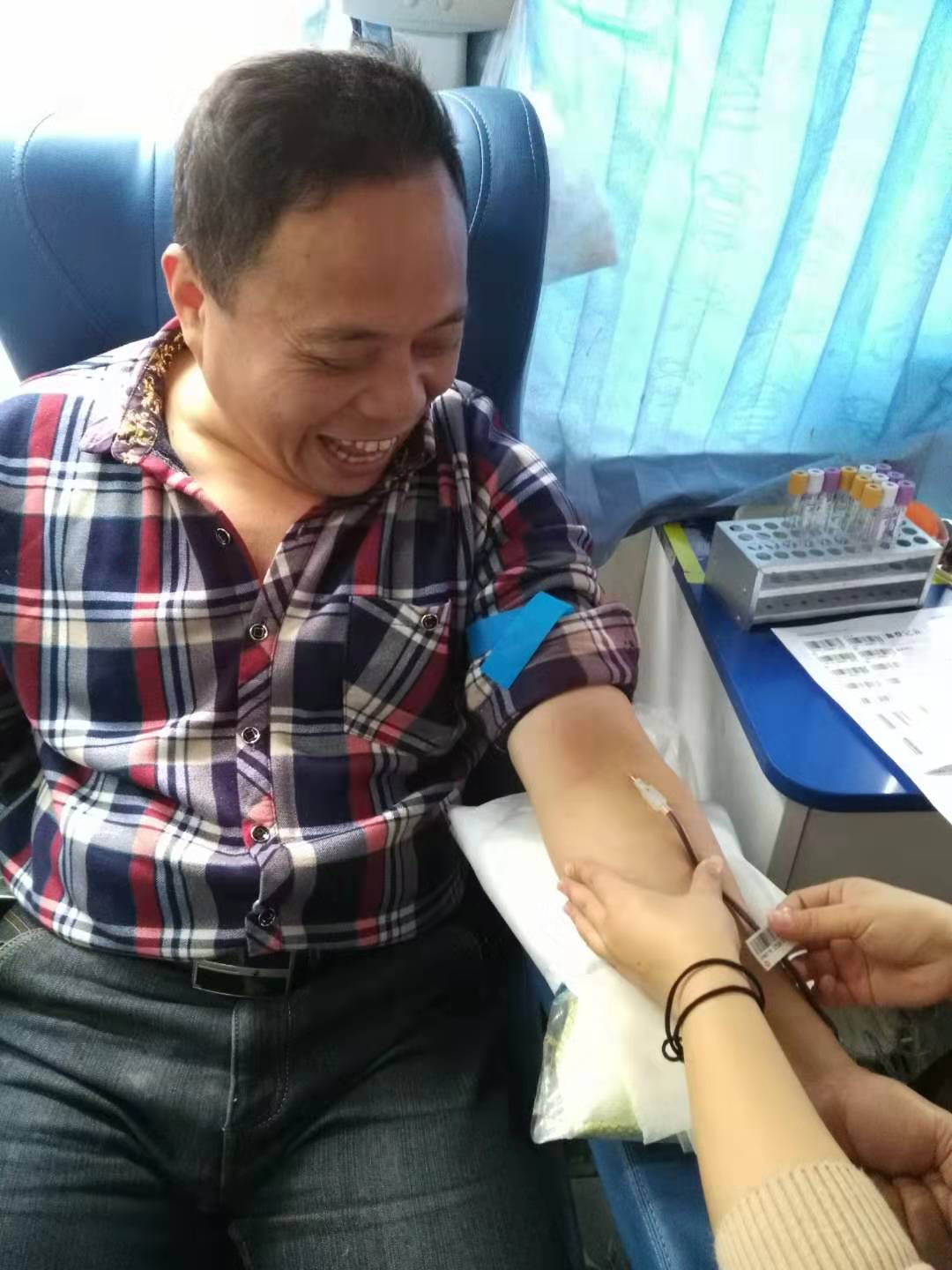 工作之余的谢军主动参加无偿献血,看他夸张的表情,原来平时认真严谨的谢医生也有可爱、搞怪的一面呢!