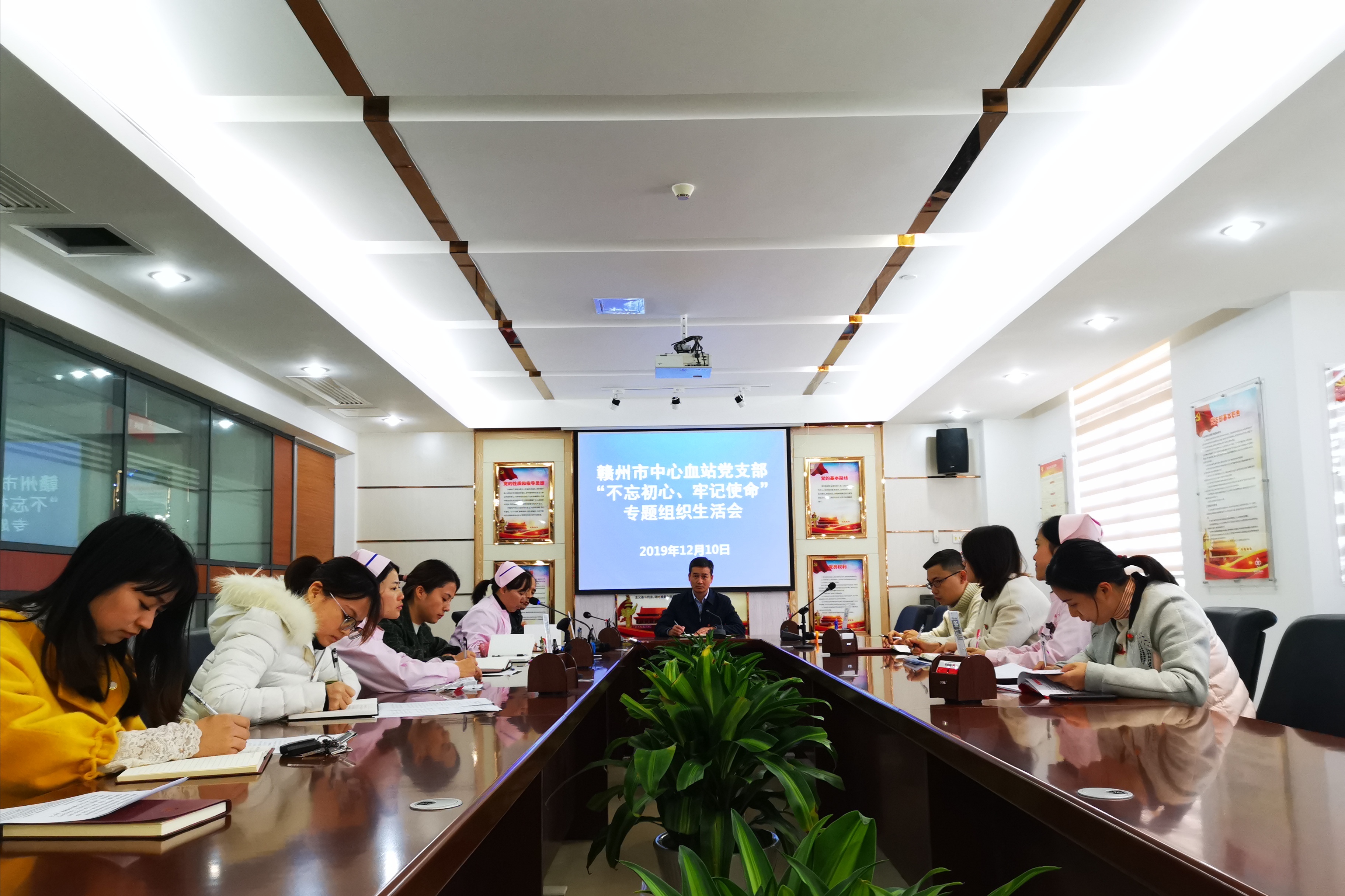 2019年12月10日,市中心血站党支部召开“不忘初心、牢记使命”主题教育专题组织生活会,开展民主评议党员。
