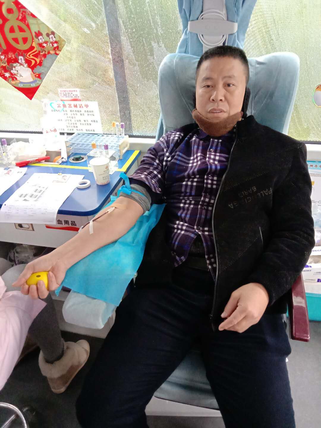 不多久,郭春辉与妻子携手走上了爱心献血车,也就出现了文章开头的那一幕。去年也是在农历新年的第一天,郭先生就在妻子的陪同下,为我市临床患者捐献了一份爱心血液,当时接待郭先生夫妇的志愿者就是血源管理科的熊良水。