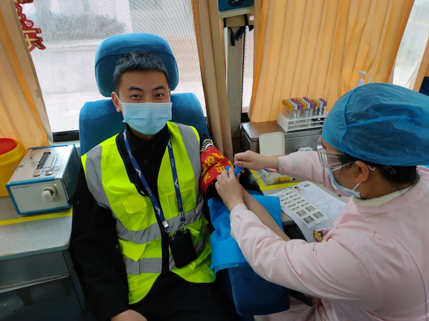 为避免献血者聚集,筑牢防控疫情防线,保障献血人员和医务人员的健康安全,赣州机场采取分时、分段、分流进行献血,大家井然有序地填表登记、体检检验、献血。职工们制服整齐、精神饱满,虽然都戴着口罩,但丝毫掩盖不住他们坚定而热切的眼神,大家表示:特殊时期,希望能以捐献血液,为爱逆行的方式贡献出自己的力量,为祖国加油!