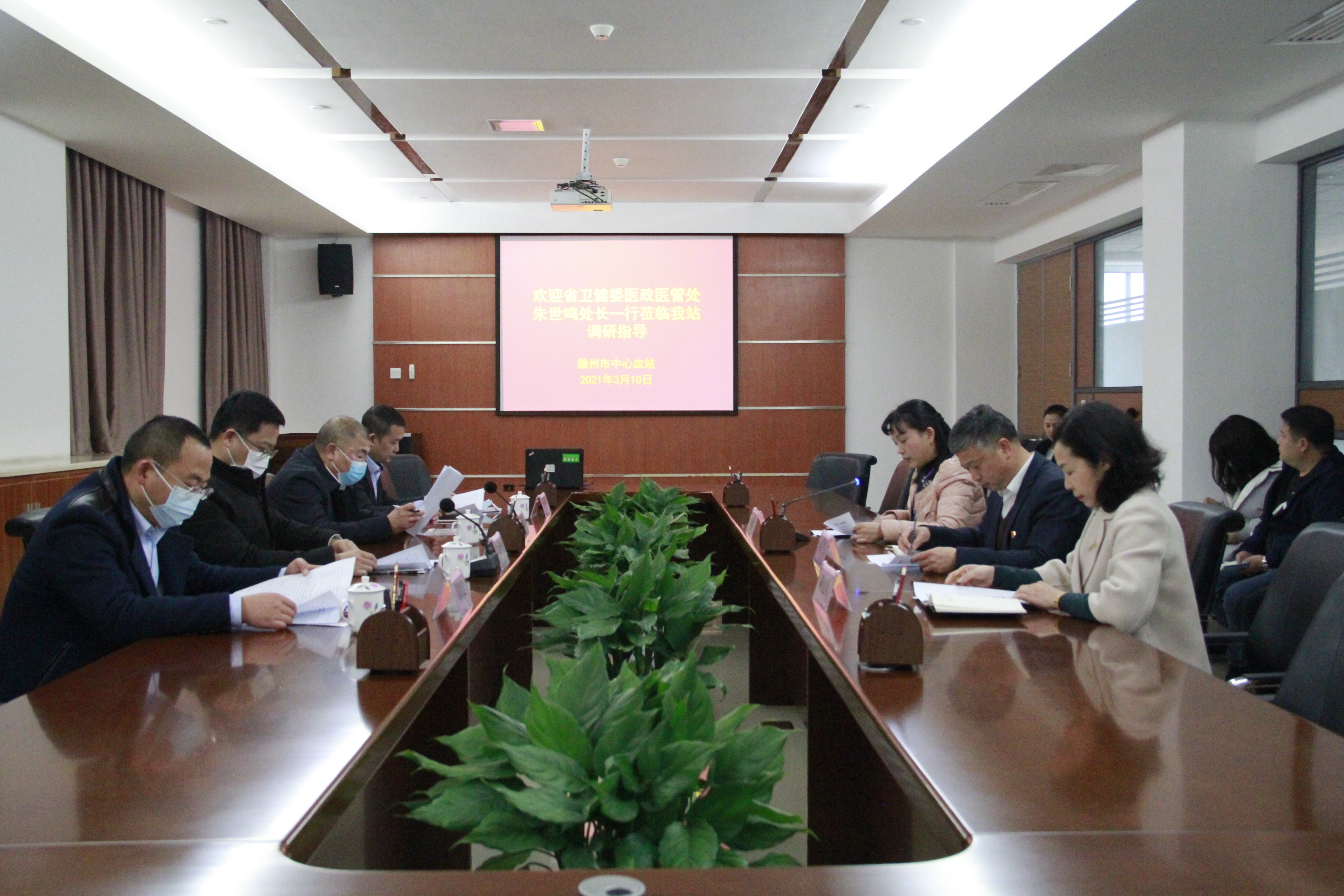 3月10日,省卫健委医政医管处朱世鸣处长,省卫健委医政医管处主任科员葛贤建莅临我站调研指导。市卫健委党组成员、副主任傅伟,市卫健委医政医管药政科科长赵乘明陪同,站领导班子陪同调研。