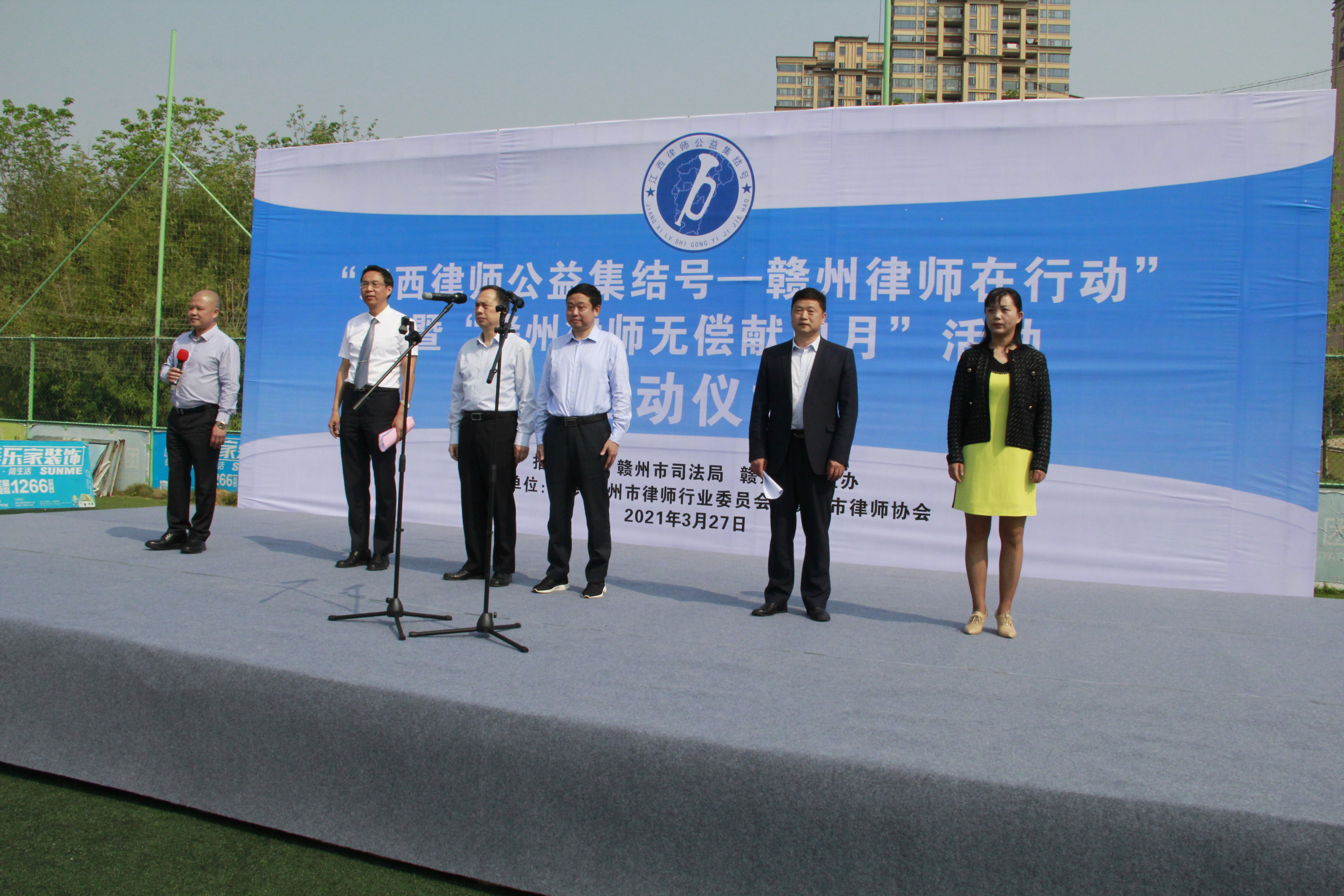 伴着庄严的国歌声响,启动仪式正式开始。仪式上发布了赣州律师2020年公益数据,通报了荣获省律师行业党委、省律师协会表彰的公益表现突出律师机构和律师个人,展示了赣州公益律师团队旗帜,公益律师代表作了表态发言。