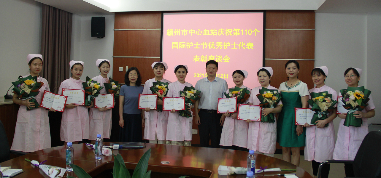 副站长赖建秀宣读了《赣州市中心血站关于表彰2020~2021年度优秀护士的决定》,王莉、邓媛、叶倩玮、李津、张雪梅、张春梅、罗玖、郭如健、谢素芬、赖妍希10名同志荣获“赣州市中心血站2020~2021年度优秀护士”荣誉称号。