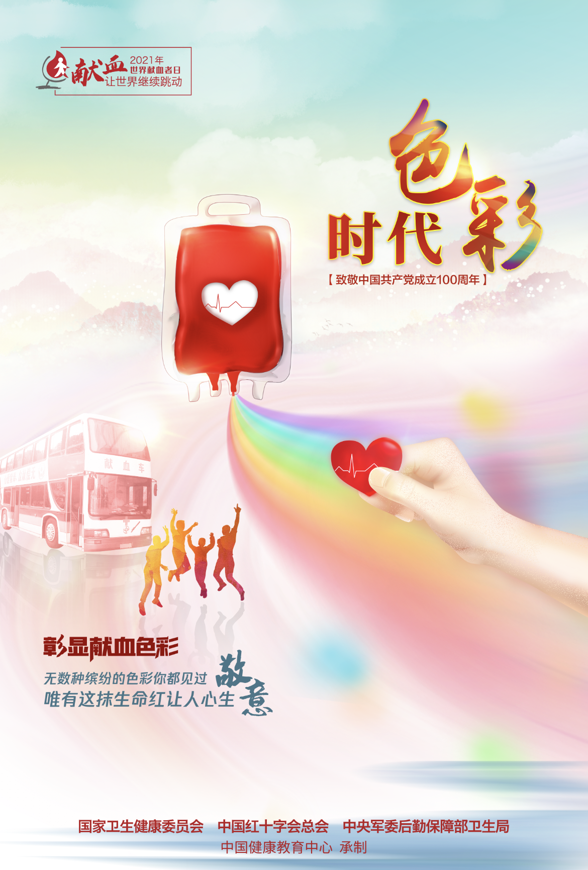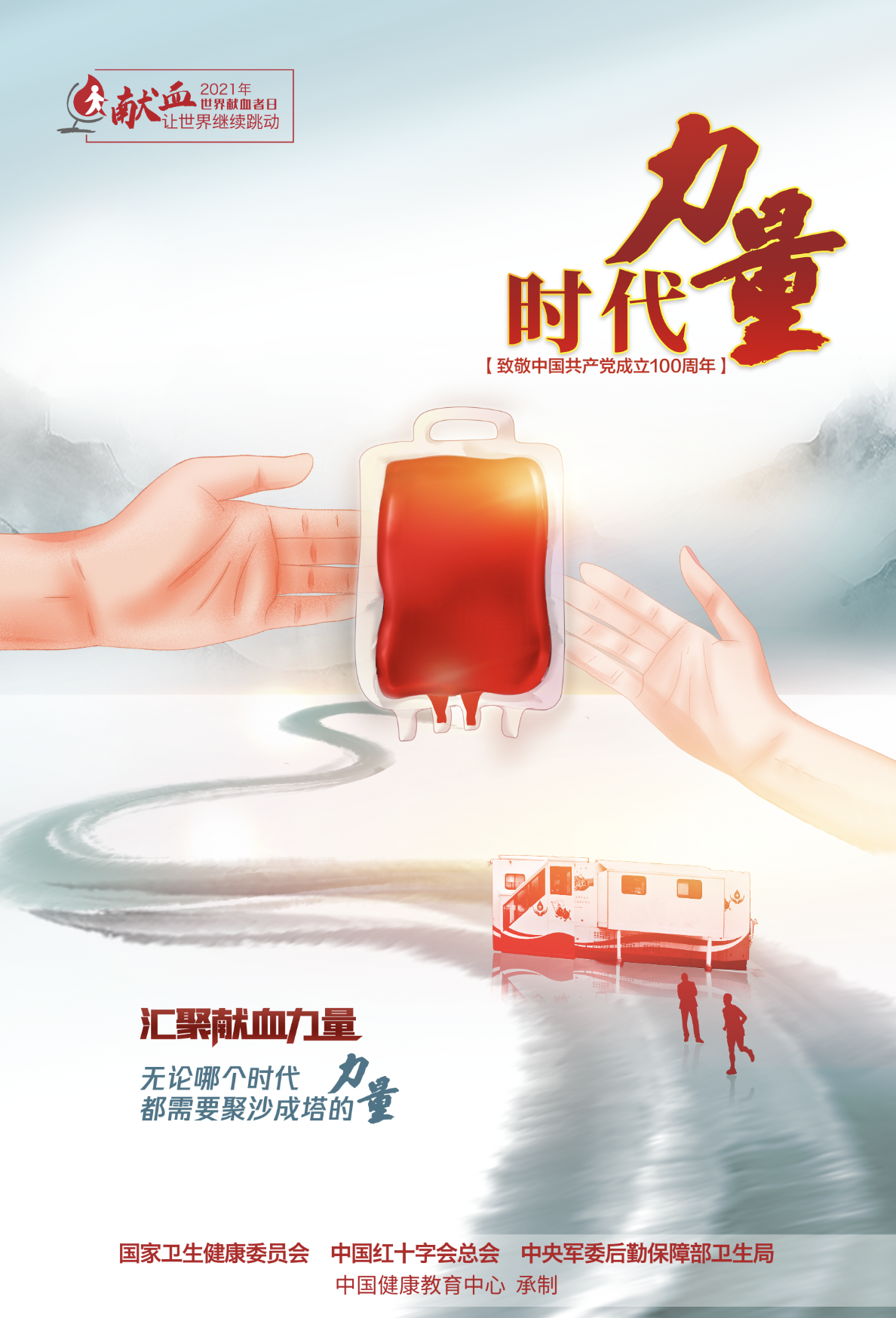 2021年6月14日是第18个世界献血者日,世界卫生组织发布活动口号“献血,让世界继续跳动”。为指导各地做好世界献血者日宣传工作,致敬无偿献血者,营造有利于无偿献血健康发展的良好社会氛围,国家卫生健康委、中国红十字会总会和中央军委后勤保障部卫生局联合发布2021年世界献血者日宣传海报,供下载使用。此次海报共5张,围绕活动口号,彰显无偿献血公益力量,讴歌无偿献血者捐献血液挽救他人生命的崇高行为。