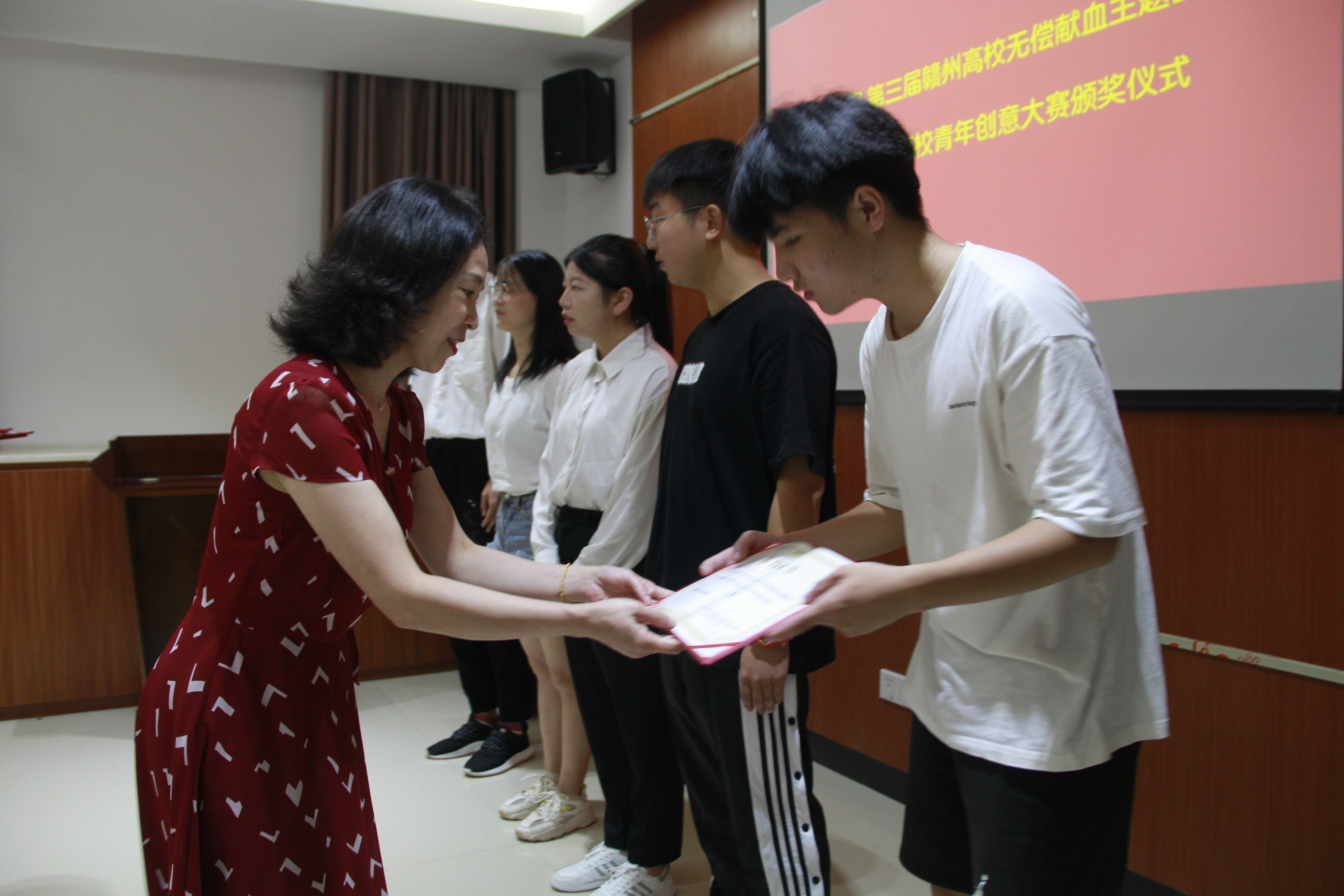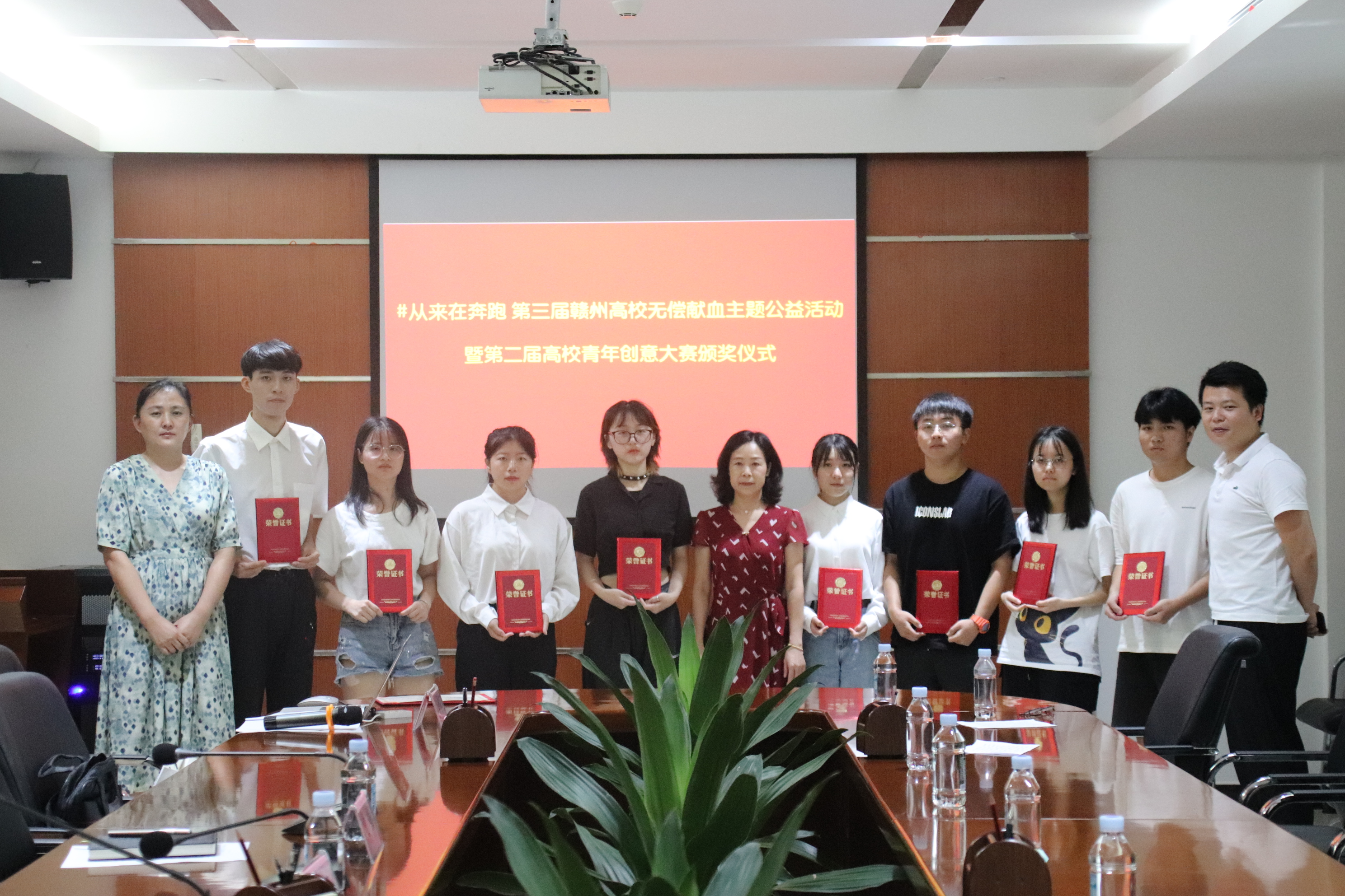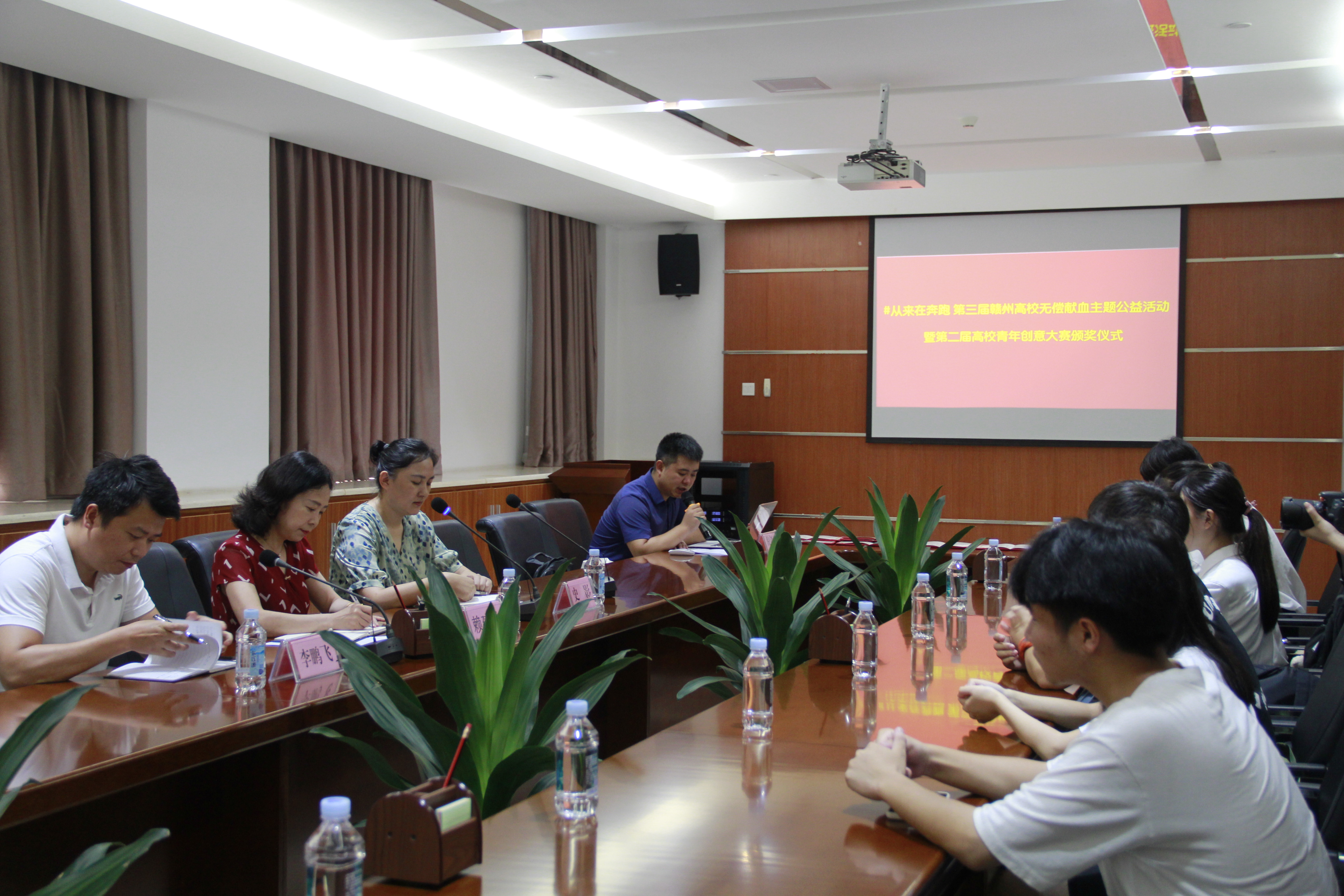 2021年6月25日上午在赣州市中心血站15楼隆重举办了#从来在奔跑第三届赣州高校无偿献血主题公益活动暨第二届高校青年创意大赛颁奖活动。赣州市中心血站副站长赖建秀,办公室主任史影,信息宣传科科长李鹏飞作为评委出席此次活动,并对每个作品作出精彩点评。