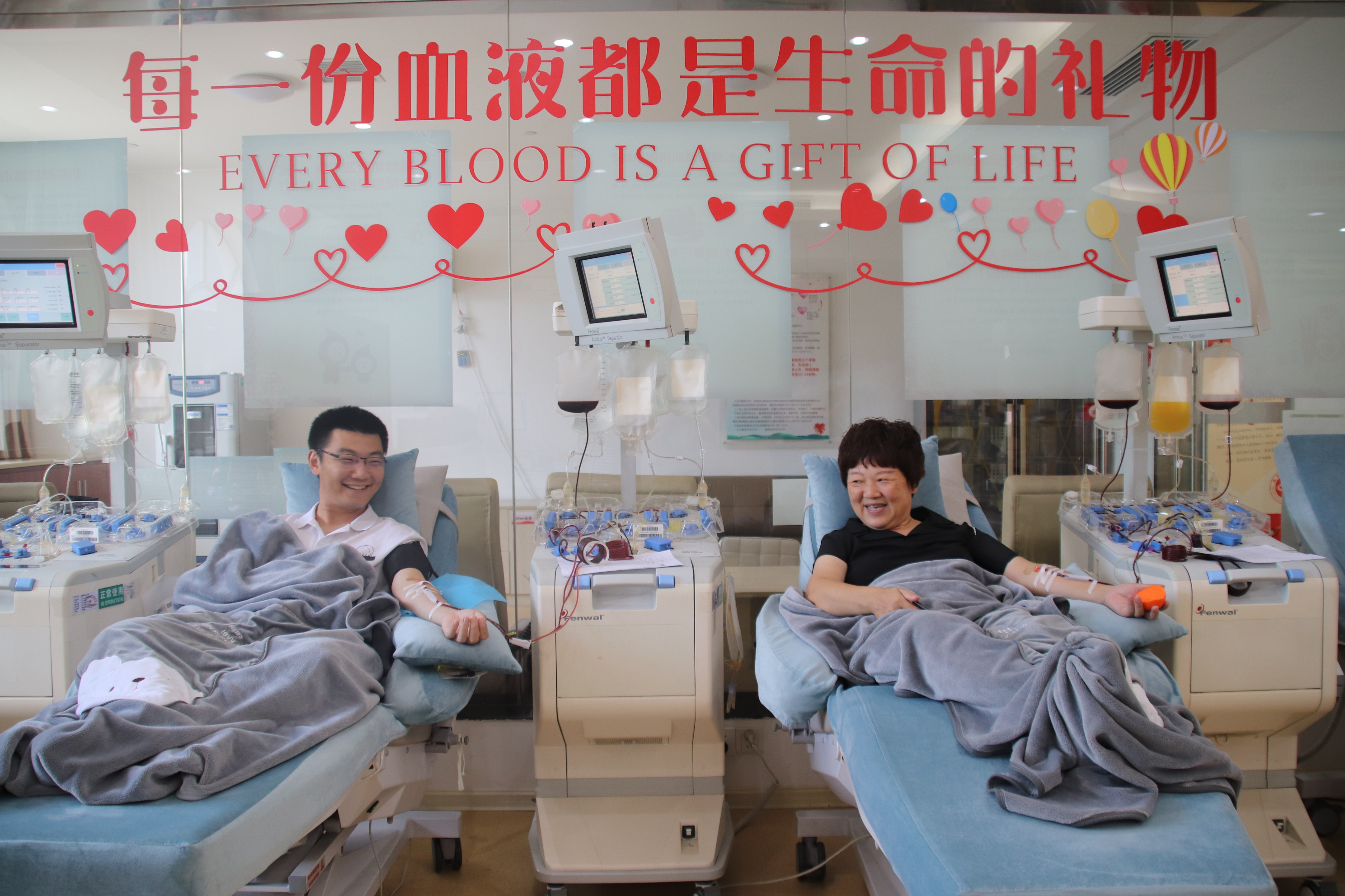 6月25日,59岁的李爱华轻车熟路地走进赣州市中心血站二楼机采室,穿鞋套、填表、测血压,无需工作人员招呼,她便做好了这些。机采室的工作人员也习惯了她的操作,只是与以往不同的是,这次李爱华身后还跟着一位年轻小伙,她和蔼地对工作人员笑道:“这是我儿子,也是来献血的!”