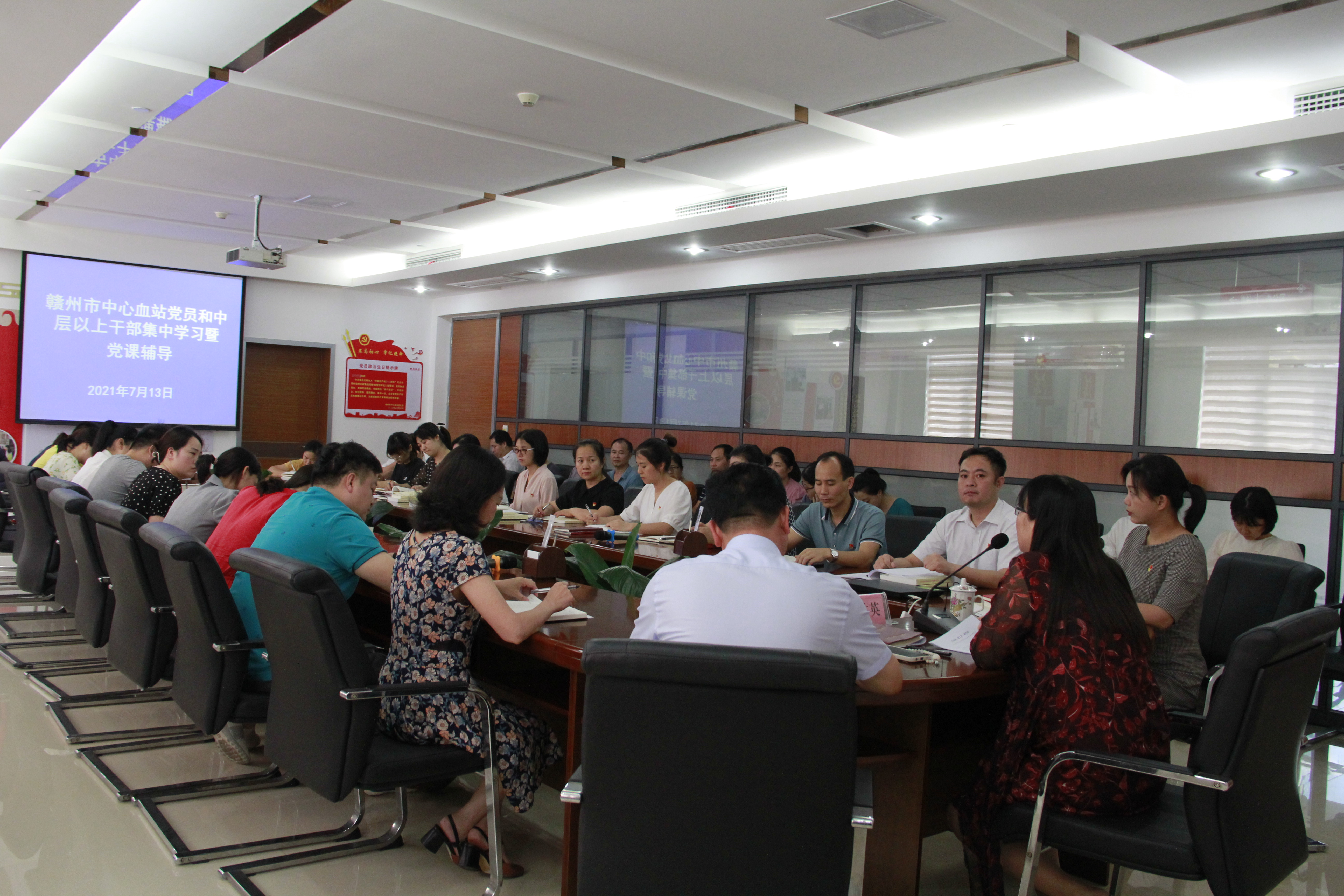 7月13日下午,市中心血站召开党员和中层干部集中学习暨党课辅导,市计生协会四级调研员邱林英出席会议并作党课辅导,站党支部书记、站长廖月生主持会议。