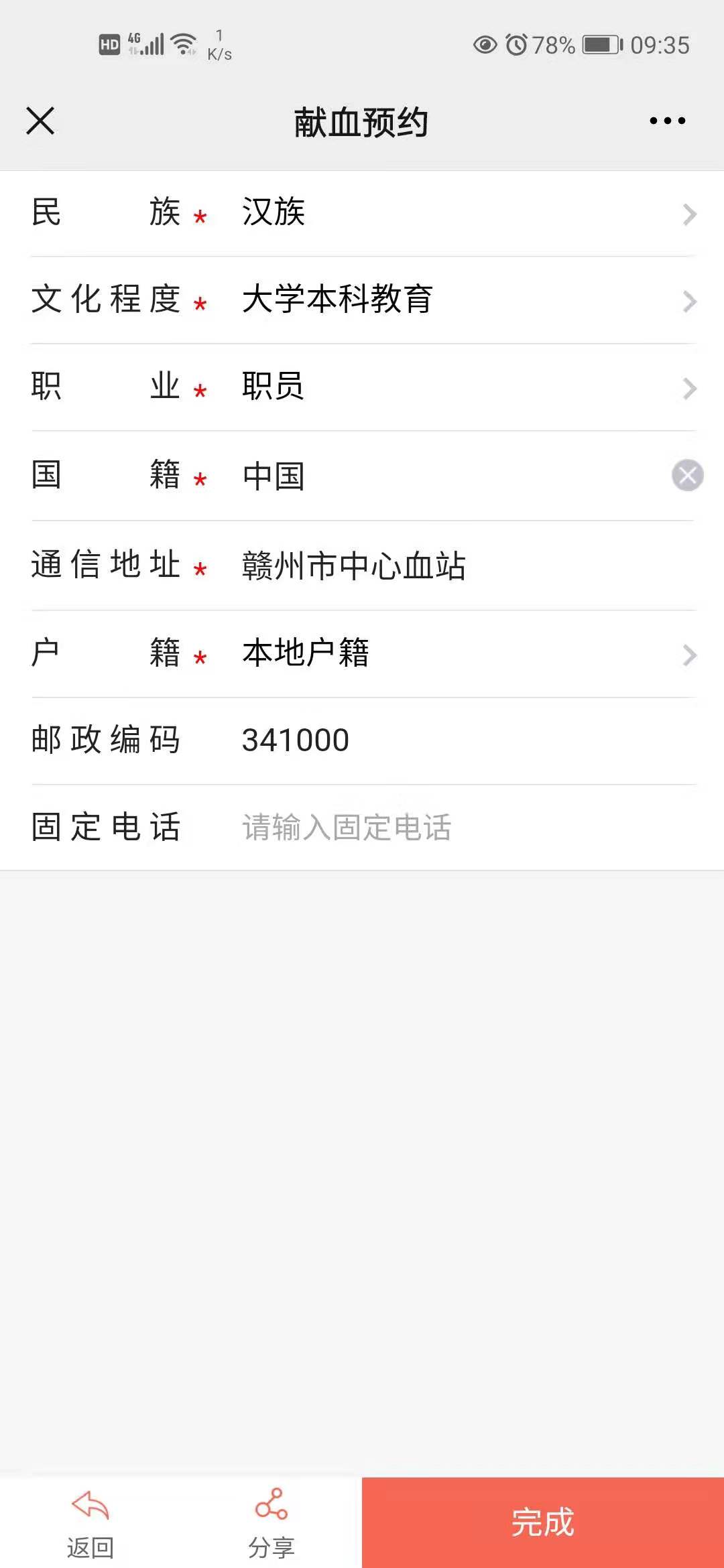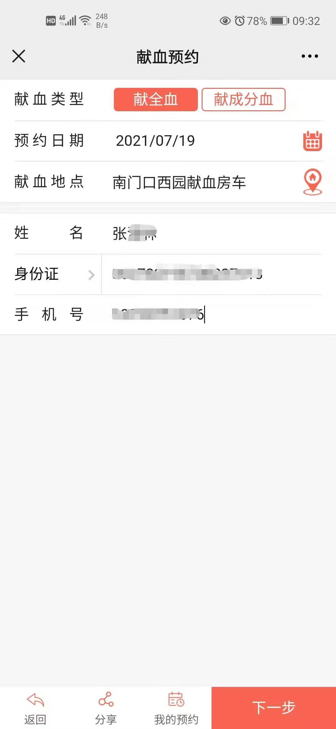 第二步:点击“献血预约”栏目进行献血预约信息的填写