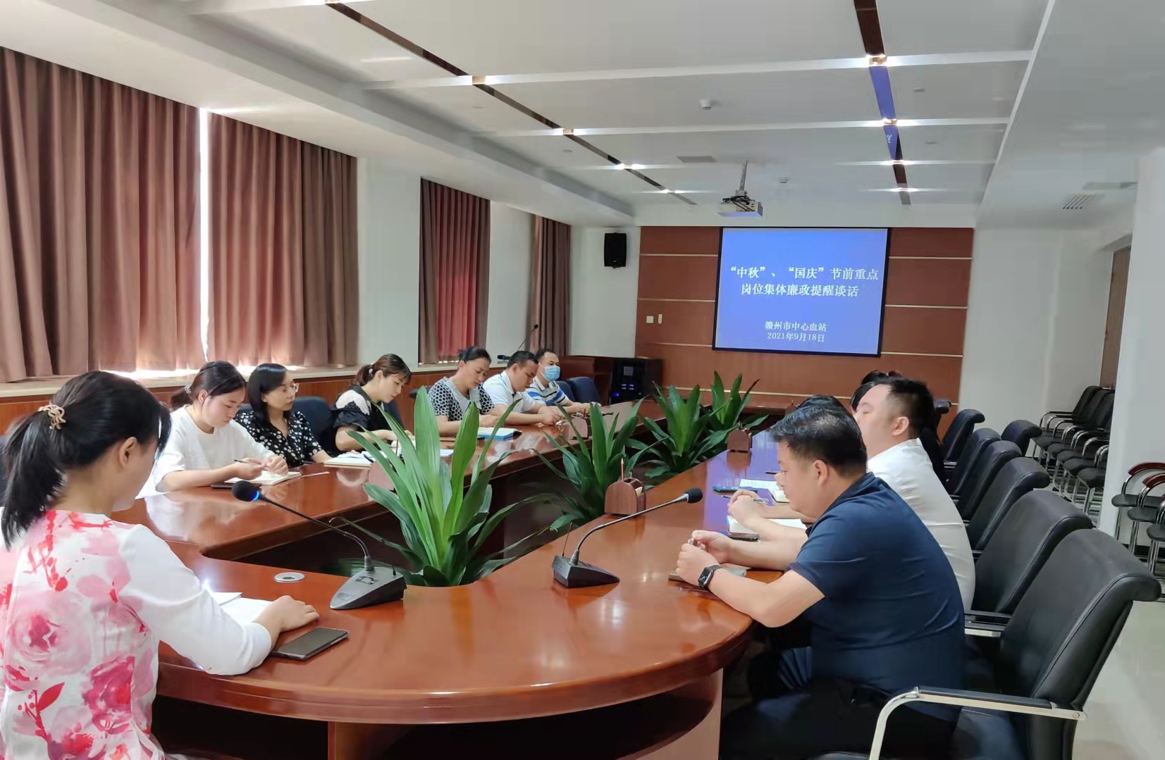 【血站动态】赣州市中心血站中秋、国庆“双节”节前重点岗位集体廉政提醒谈话