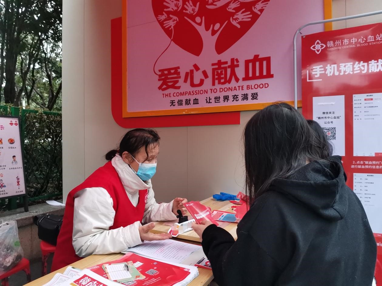 “您好,您是来献血的吗?最近有没有喝酒或熬夜?一周内有没有吃过感冒药?”2月17日下午,赣州市西园献血屋旁,熊晓莉温声细语地指导着路人填表,连绵的细雨让咨询的路人少了许多。