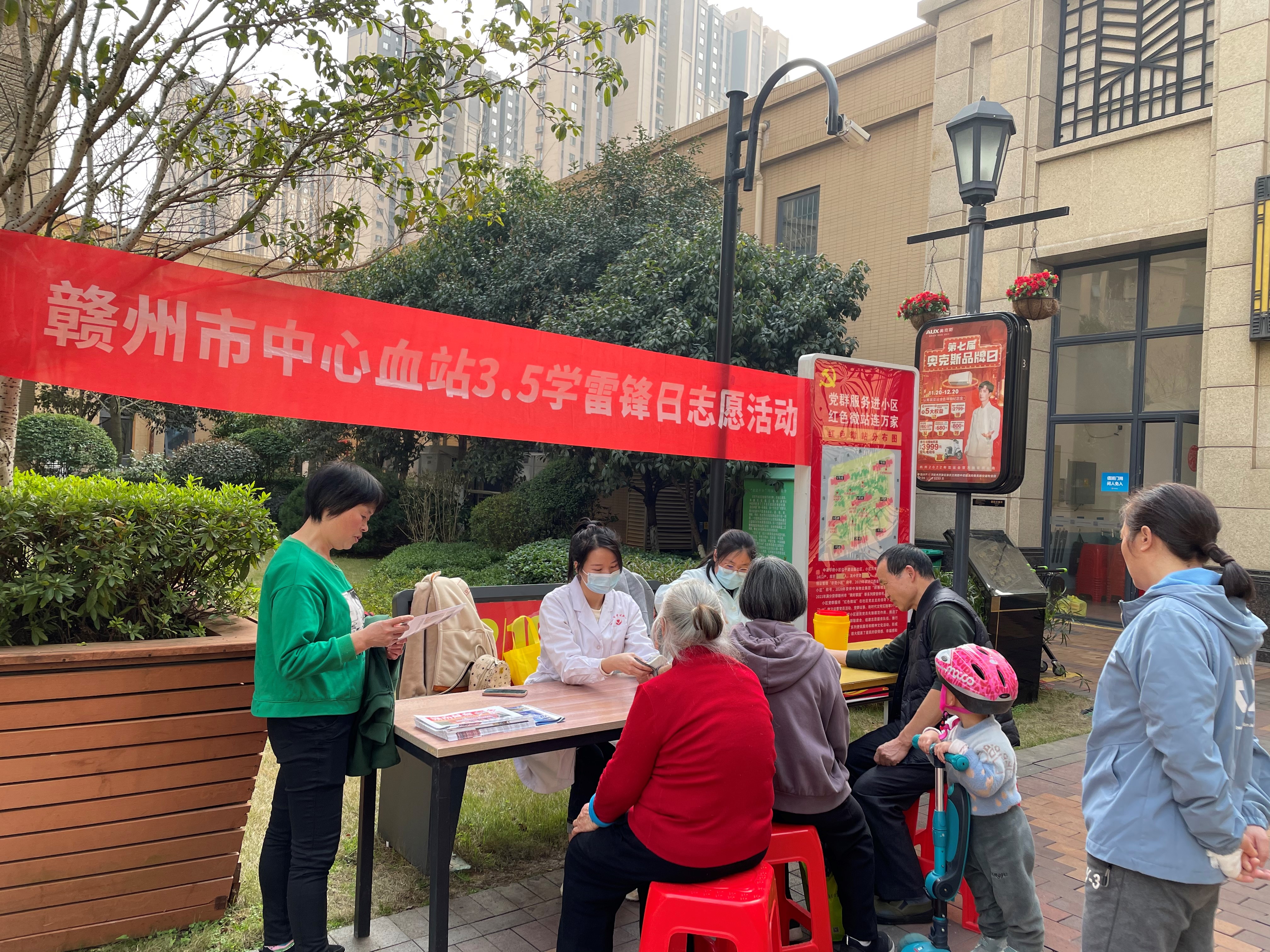3月3日下午,我站联合水南街道建设路社区开展“3.5学雷锋”志愿活动。在中海社区,我站志愿者们为群众免费测量血压、测血型,为社区居民发放反诈骗及无偿献血宣传册,活动现场吸引居民驻足咨询及踊跃参与,志愿服务活动受到了广大居民的赞许和欢迎。无偿献血是公益事业,每天,在我们的身边能看到无数为拯救他人生命而撸起袖子捐献热血的爱心人士。通过志愿服务活动,将血站的健康关怀真诚地传递给社会大众,志愿服务让我们的生活更加美好。