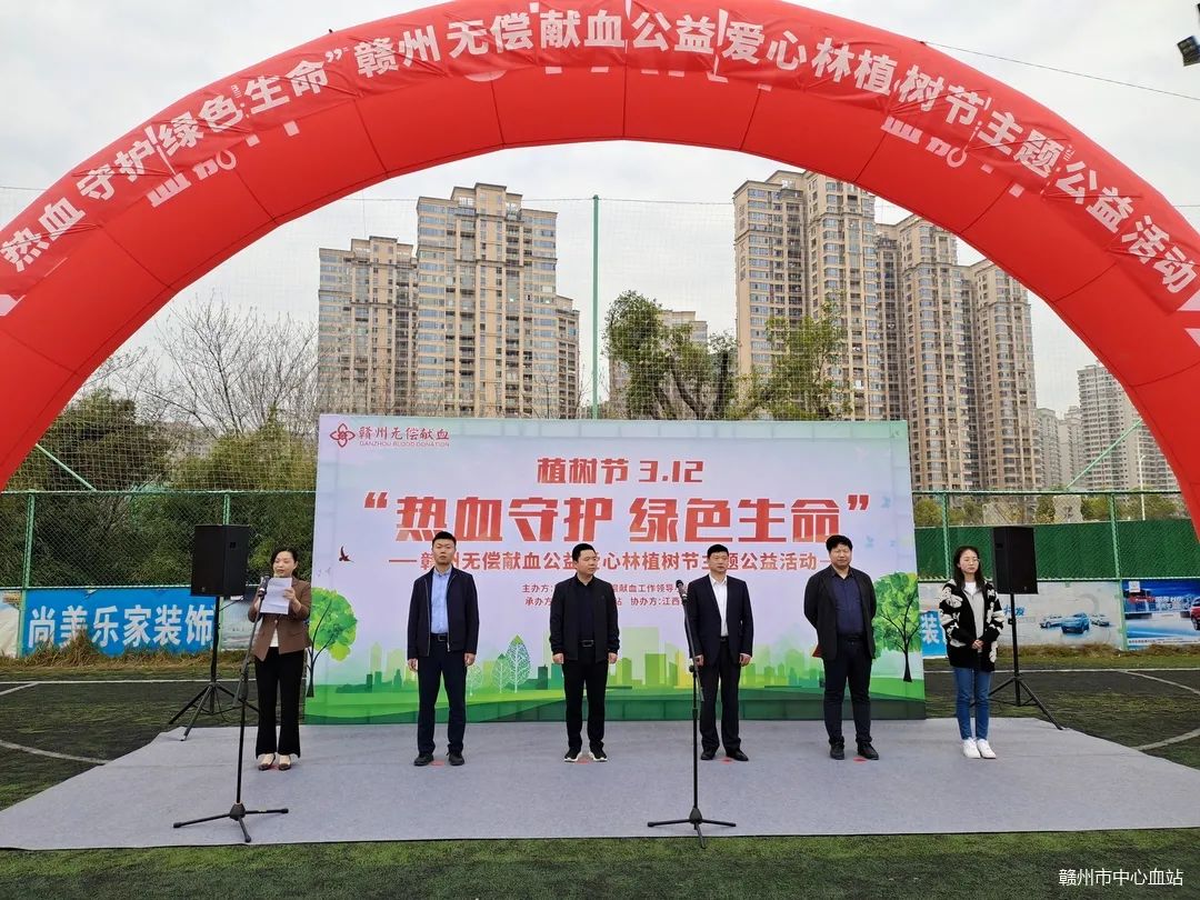江西理工大学团委书记 杨智勇、赣州市献血办副主任、赣州市中心血站站长 廖月生、江西理工大学稀土学院党委副书记李振、江西理工大学资源与环境工程学院学工办副主任兼团委副书记 刘浩、赣州市中心血站副站长 江帆、江西理工大学稀土学院辅导员 产蔼宁出席活动。活动由江帆主持。同时,参加活动的还有赣州市红十字无偿献血志愿工作者服务队中心城区各分队代表、江西理工大学高校代表和媒体代表以及赣州市中心血站工作人员参与活动。活动中江西理工大学团委书记杨智勇在活动中指出,主动参与植树,争做主动植绿护绿的“先行者”;争做无偿献血事业的“宣传员”;廖月生宣布活动开始。活动结束后志愿者们在“无偿献血公益爱心林”里进行植树活动。松土、刨坑、定植、浇水、修剪……爱心林的土地上穿梭着志愿者们辛勤劳作的身影。以实际行动爱绿、植绿、护绿。在活动开展过程中,大家雀跃参与,为营造绿色环境,创造类好家园,宣传生态赣州作出了应有的贡献。