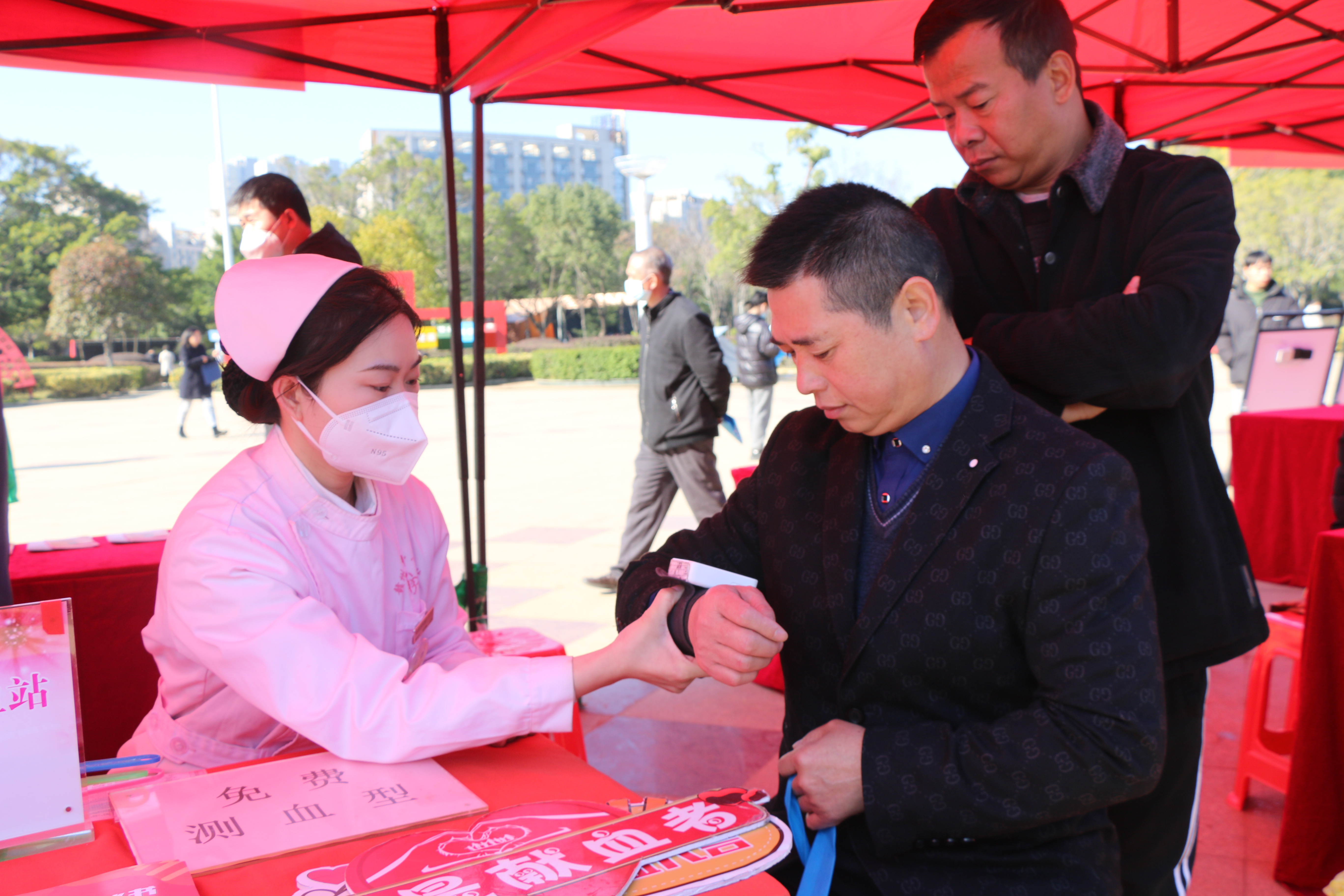 活动现场,通过搭建宣传帐篷,摆放宣传展板、发放手册资料,向群众宣传无偿献血知识,为群众量血压、测血型,引导至献血屋中进行体验献血,并同时在广场上开展了现场直播活动,得到良好的群众反响。