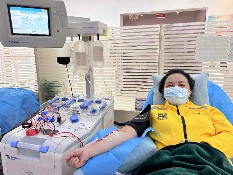 蒋荔大姐是一位美团外卖骑手,作为一名骑手,她的工作并不轻松,每天将近10个小时的工作时间里,不管刮风下雨,严寒酷暑,她都争分夺秒地奔波在送外卖的路上。然而就是这样对时间“斤斤计较”的人,却舍得把时间花在无偿献血上。只要临床有血液需求,她都会第一时间赶到血站参与献血,她就像骑士一样,勇敢且坚定。