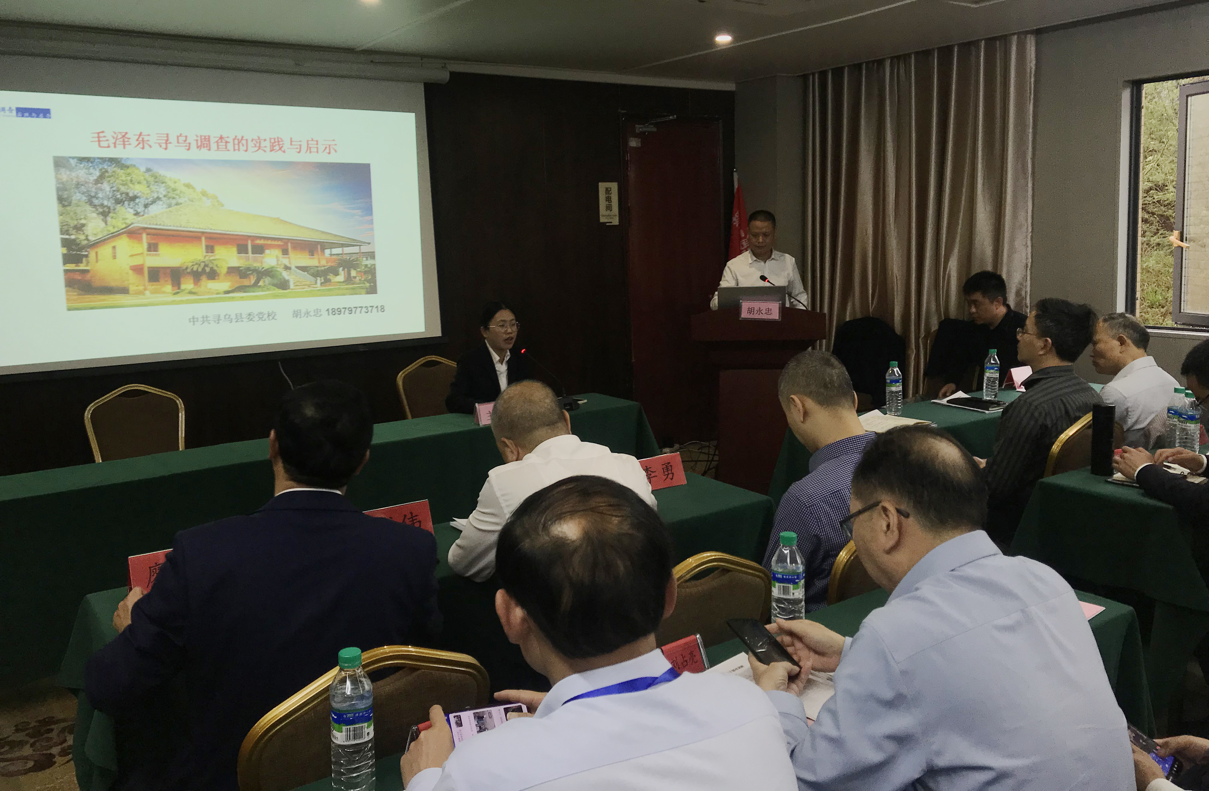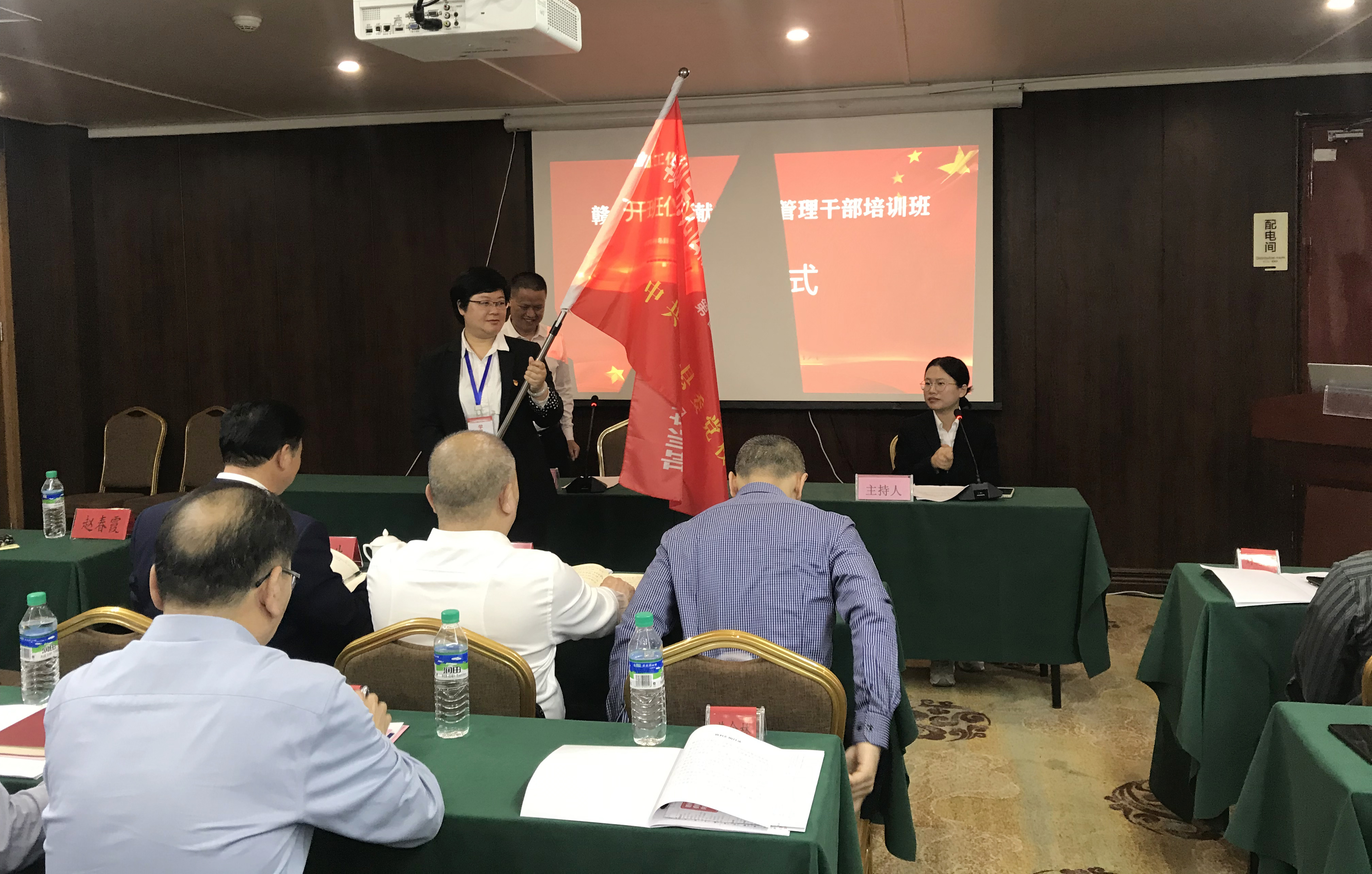 中共寻乌县委党校校务委员胡永忠向培训班班委代表授旗