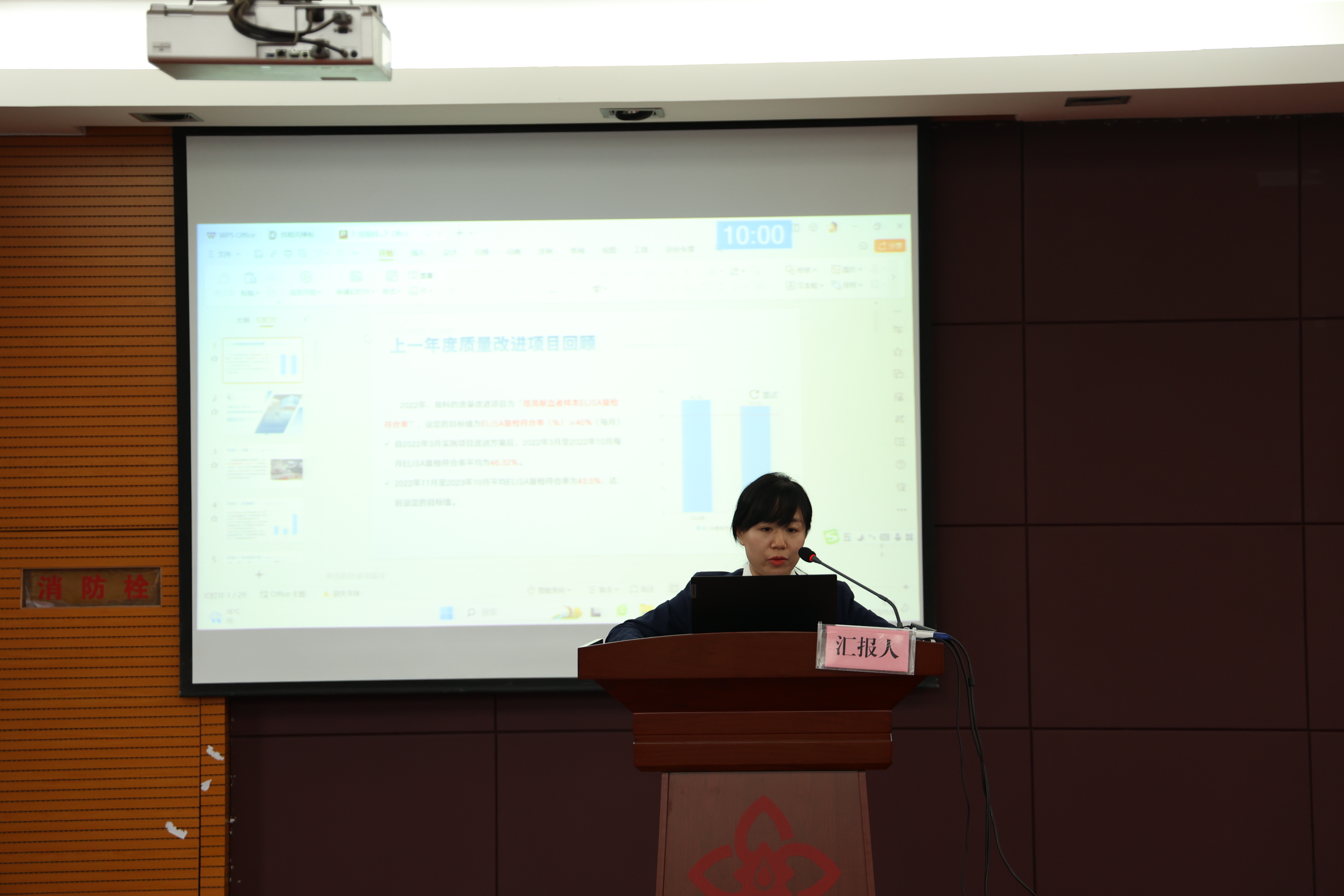 为检验质量管理工具的应用实效,进一步推动科室质量管理的科学化、规范化,提高全站员工对质量管理工具及方法的应用能力,根据《赣州市中心血站质量改进管理制度》的要求,2023年11月7-8日,赣州市中心血站组织了2023年质量改进项目成果汇报活动,全站共9个项目参与本次汇报,质量主管、副站长赖建秀参加汇报会。