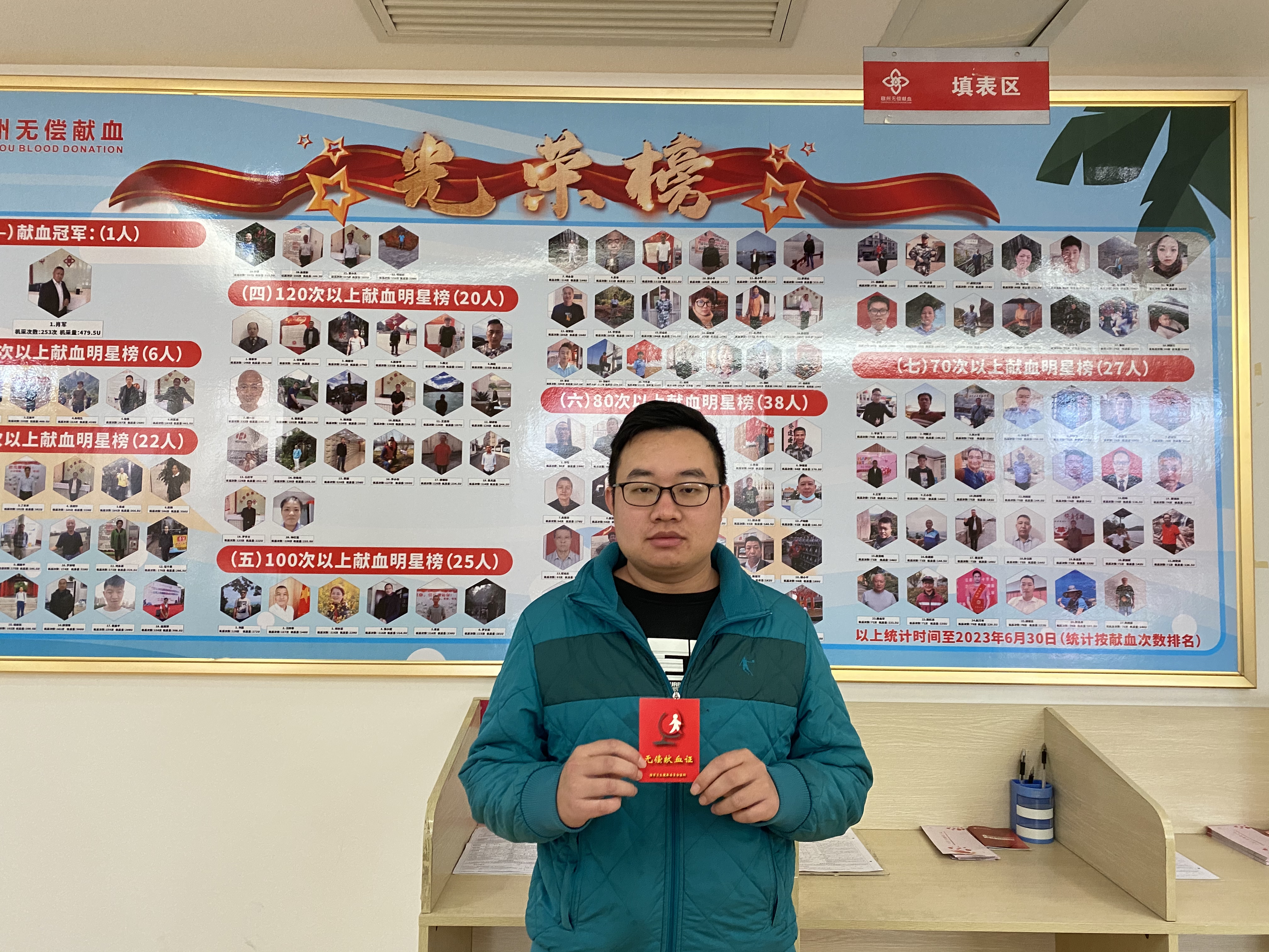 卢海新,广东揭阳人,从大学时代开始,被无偿献血的理念所感染。在繁忙的学业中,他闲暇之余踏上献血车,将爱心融进每一滴血液。这份最初的好奇和向往,逐渐演变成了他生命中不可或缺的一部分。坚持献血七年,献血46次18400毫升。他从一个年轻的大学生变成了职场新人,但不变的是他作为无偿献血者的身份。他从未动摇过自己为社会贡献一份爱心的信念,即使生活日渐忙碌,即使周围的人或许并不理解他的选择。这位小伙伴简单质朴的献血行为,也许自己都没曾想过这是在不经意间成为了他人生命中的光。
