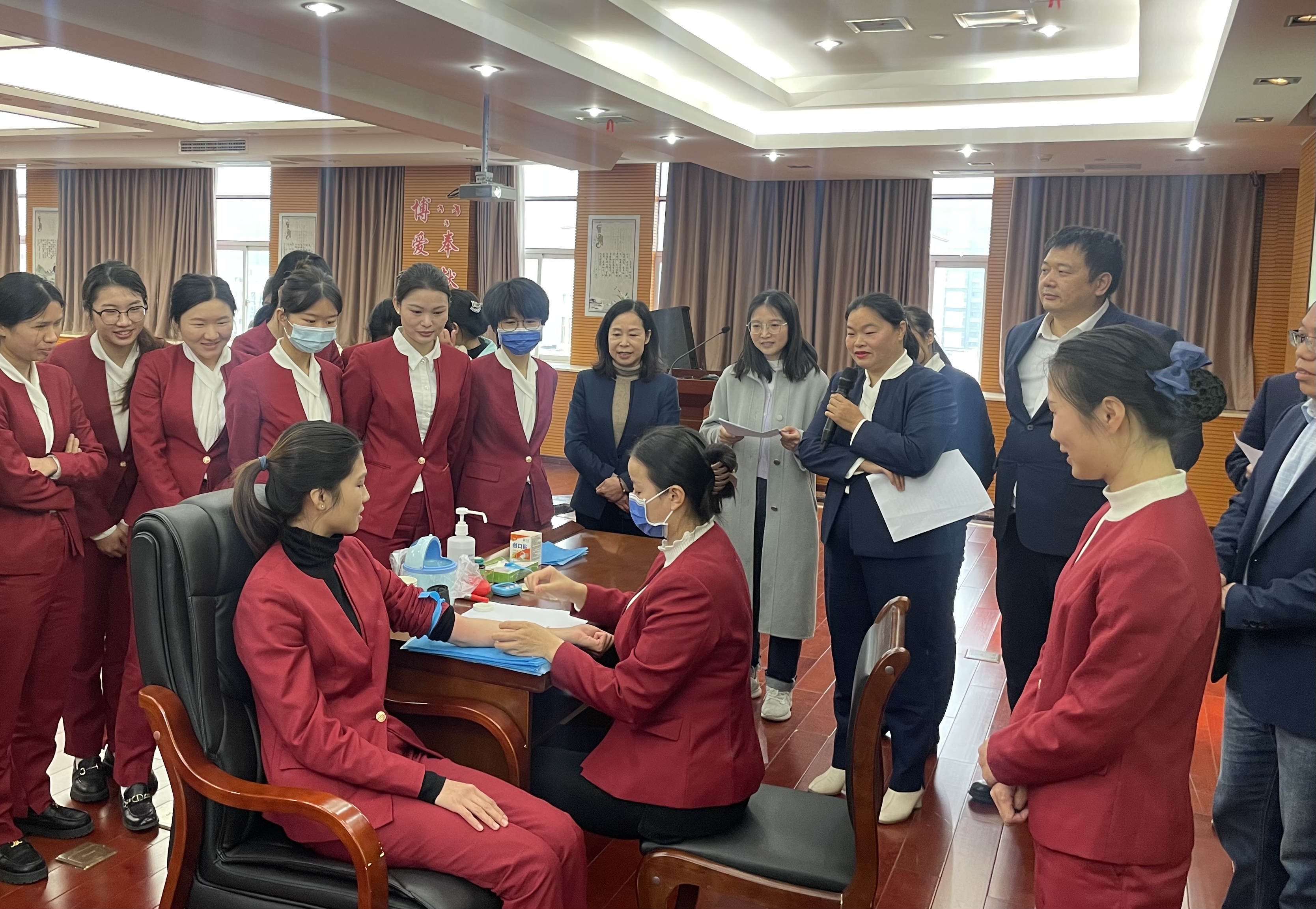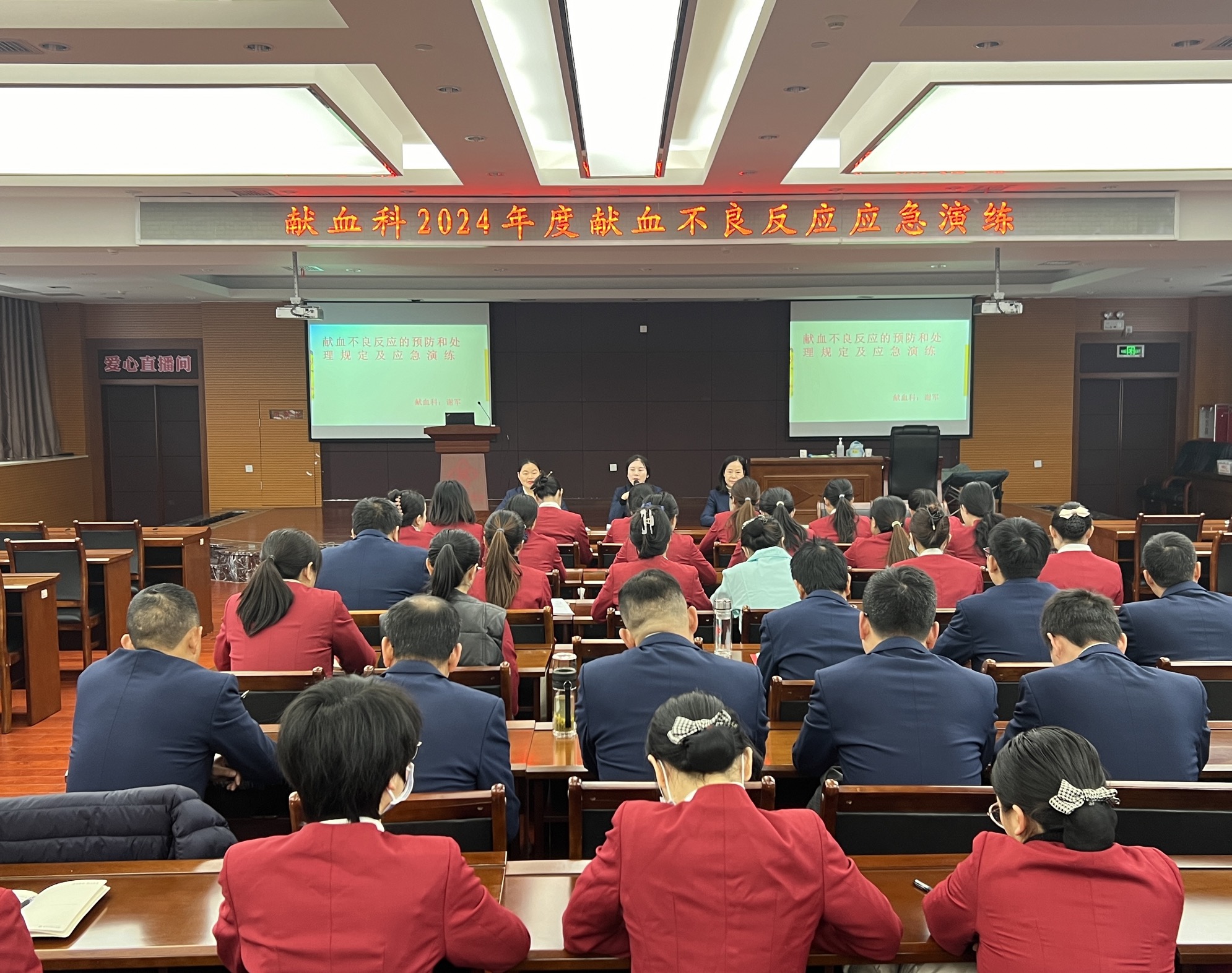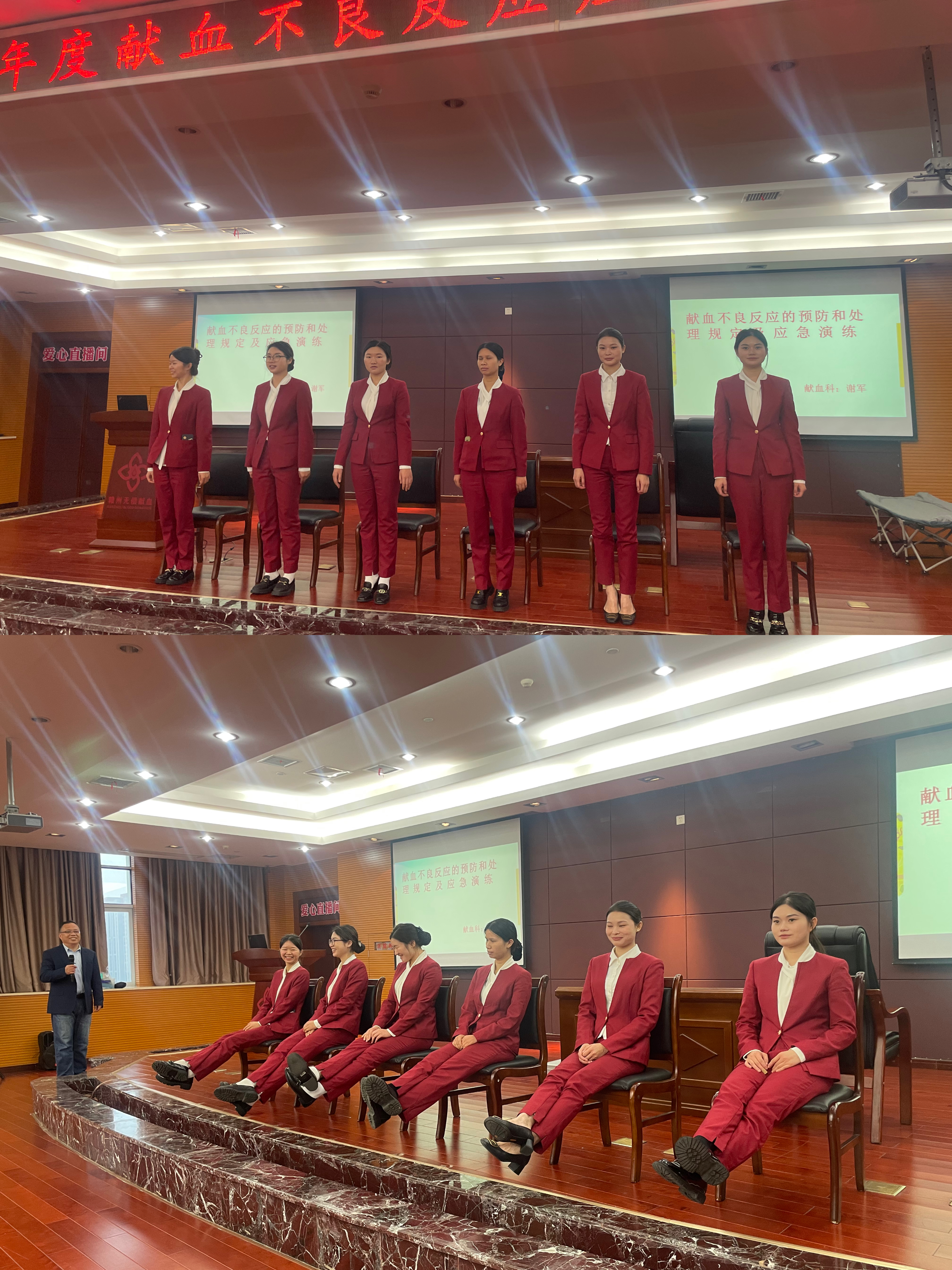会后,献血科全体工作人员在赖建秀及质管科教科监督指导下开展献血不良反应培训与应急演练。