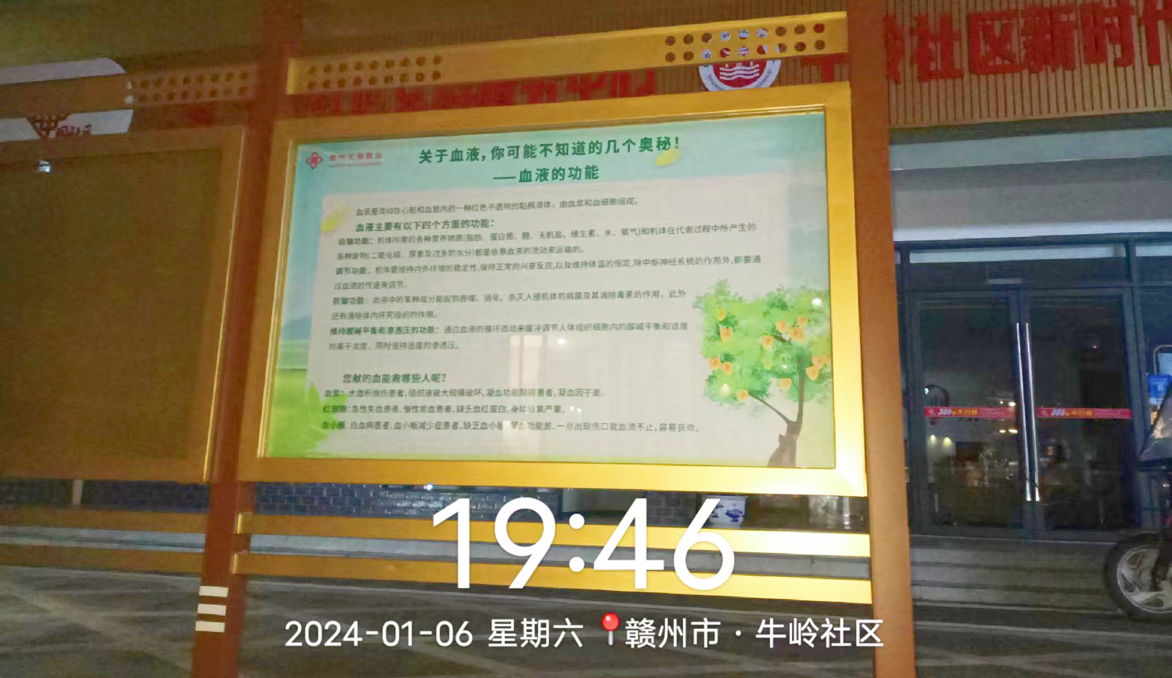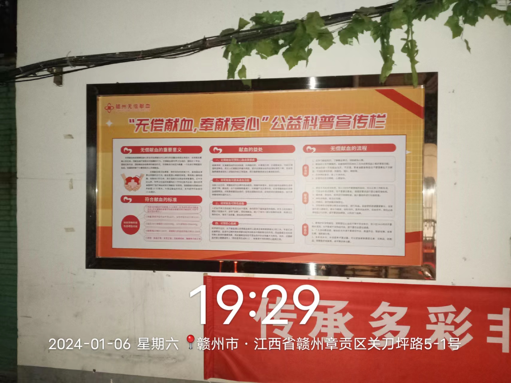 近日,在水南街道办、东外街道办的爱心支持下,赣州市中心血站与我市多个社区及小区(学府社区、东外街道社区、牛岭社区、八零公社小区、华宝小区等)共同开辟了无偿献血宣传新阵地。
