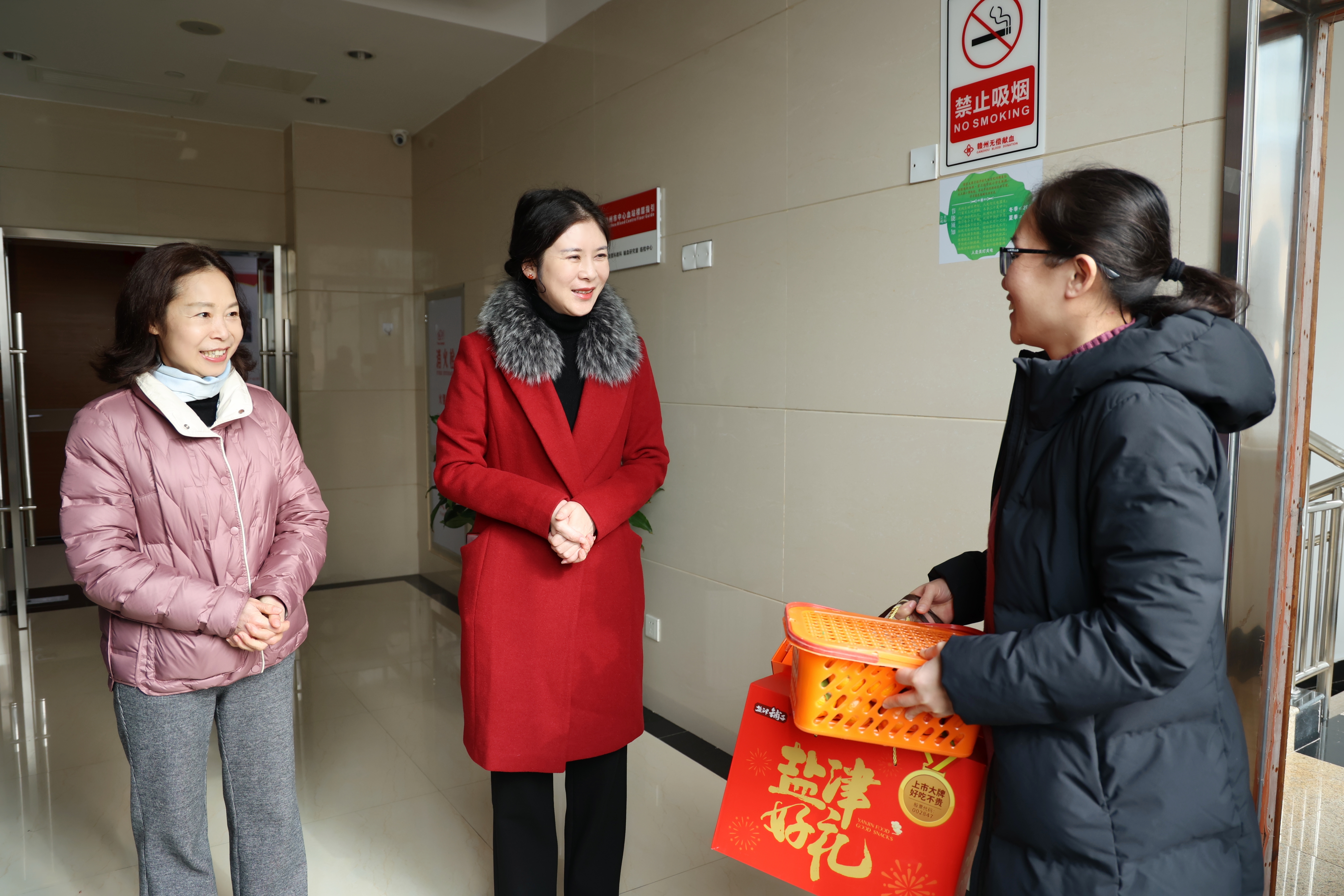 2月10日大年初一上午,赣州市中心血站党支部书记、站长李跃琼、副站长赖建秀一行前往市中心血站本部、万达广场献血点、西园爱心献血屋,向坚守岗位的工作人员送去新春的祝福!感谢他们一年来为我市采供血事业作出的贡献,也鼓励大家在新的一年以良好的精神状态和饱满的工作热情,全力以赴做好各项工作,为献血者、用血者提供更优质的服务。