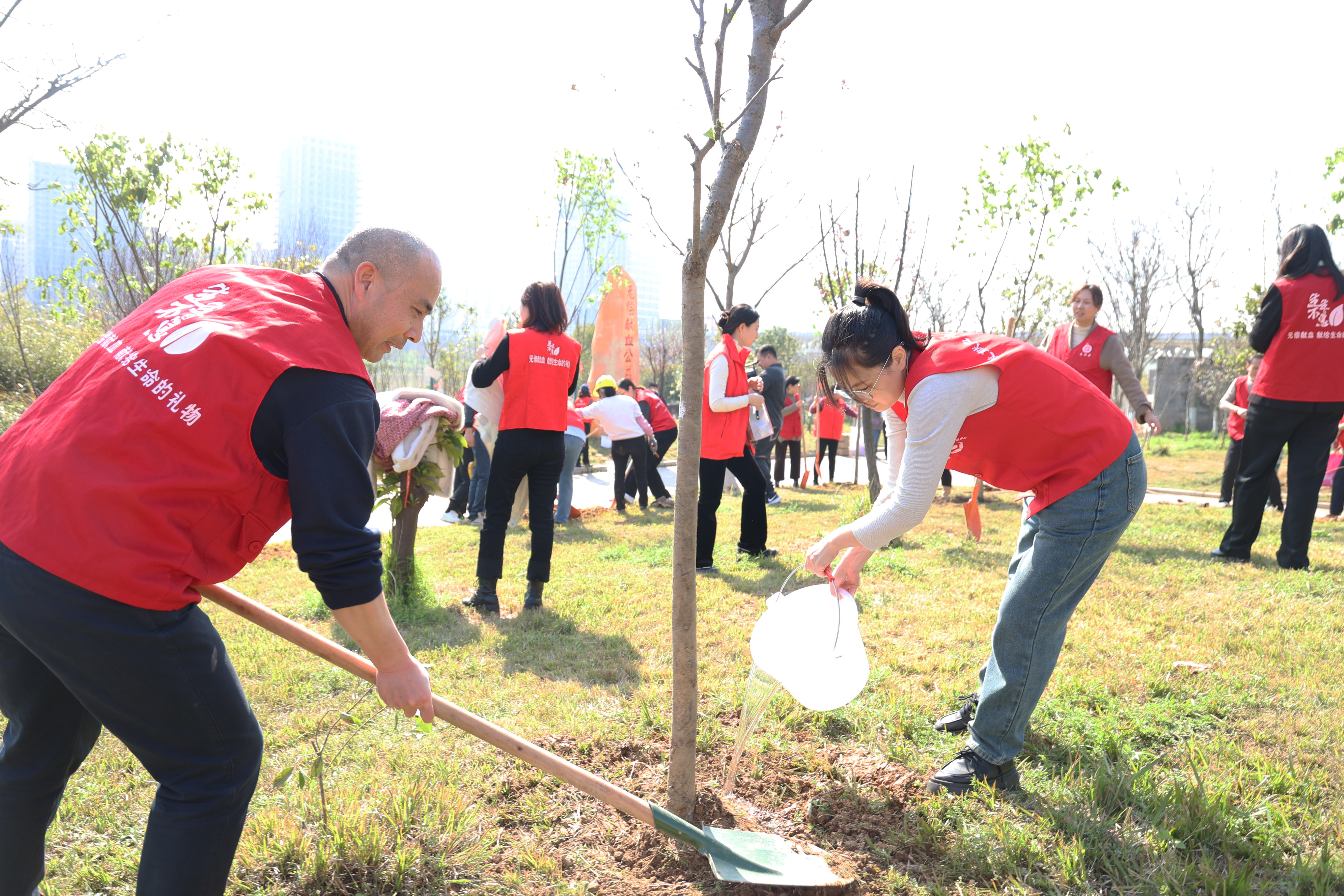 此次活动栽种下的树苗不仅为城市增添了一抹绿色,也为市民提供了一个亲近自然、感受生态之美的好去处。同时,增强了血站党支部的凝聚力和战斗力,每一位植树者也在心中植下一片“信念坚定”的树苗,让其在心中生根发芽、拔节生长、牢记初心使命。