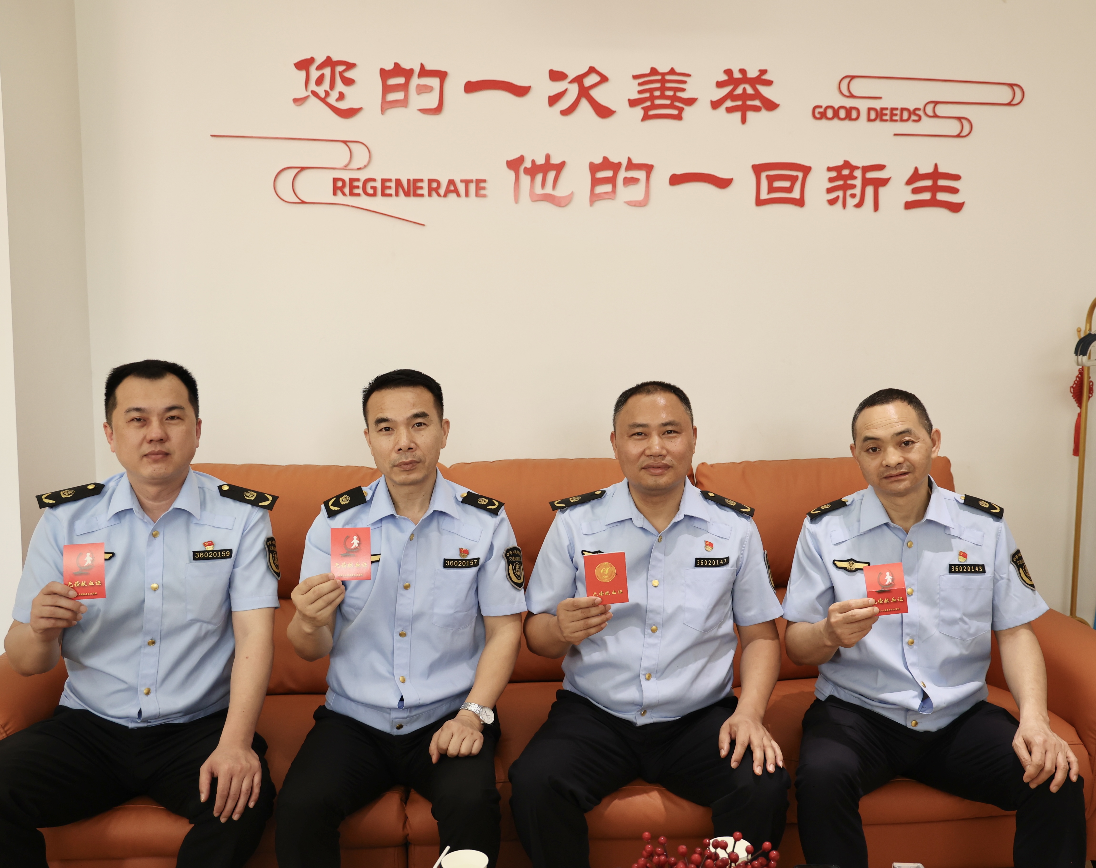 在五一劳动节的前夕,4月29日,市中心血站迎来了几位身着制服的英雄——赣州市交通运输综合行政执法支队四大队领导班子。在大队长李粹明的带领下,戴明、岳增顺、易鹏国三位领导班子成员挽袖献血,他们坚实的臂膀成为了传递生命的桥梁。