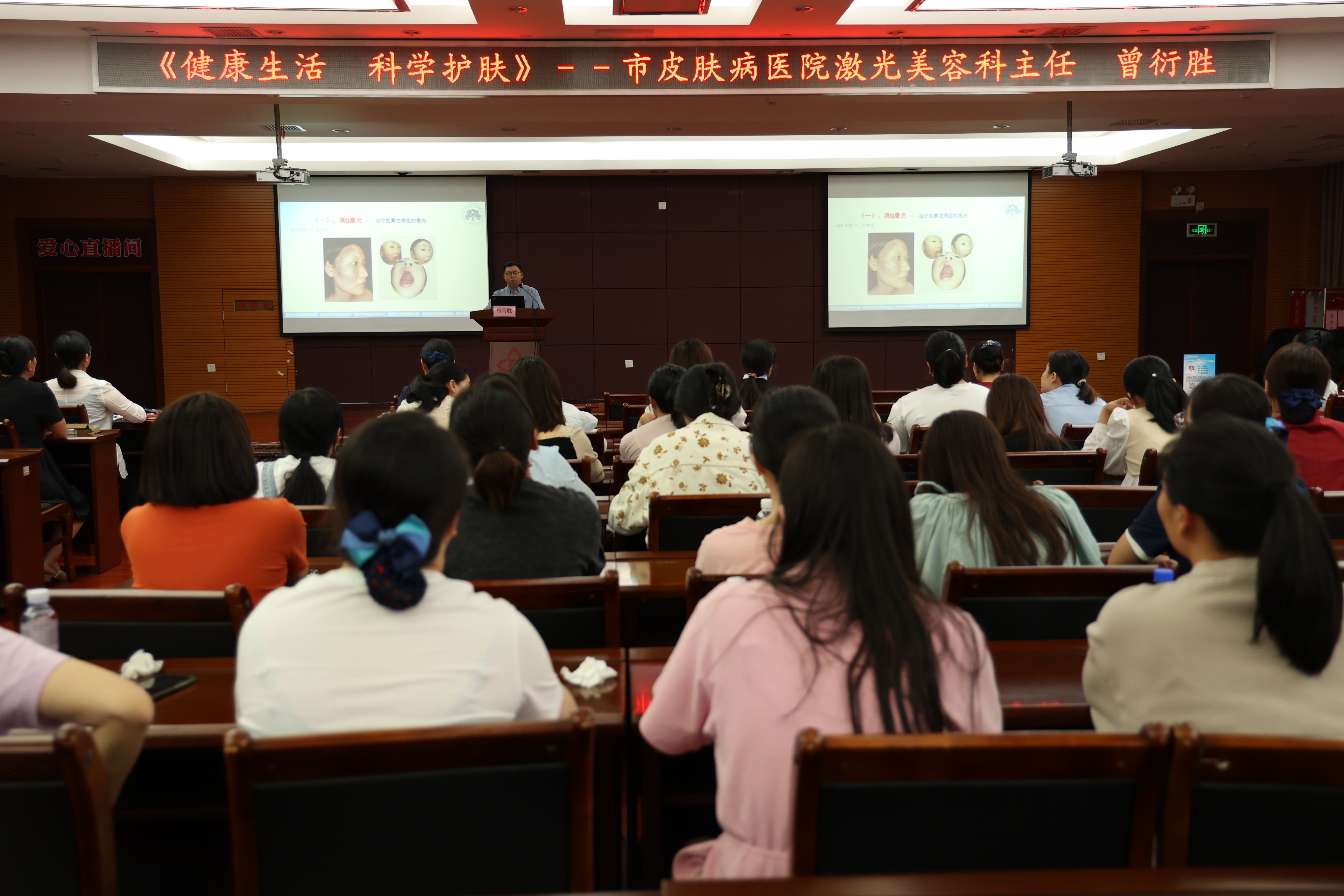 为更好地关爱女职工,并进一步增强护理人员间的沟通与交流,当日下午还举办了精彩纷呈的趣味活动。特邀赣州市皮肤病医院专家曾衍胜副主任医师,为全站女职工带来了《健康生活科学护肤》的美丽大讲堂健康讲座。讲座后,还进行了专家问诊、现场面诊,并赠送了医院特色制剂和免费美容项目等,深受大家欢迎。
