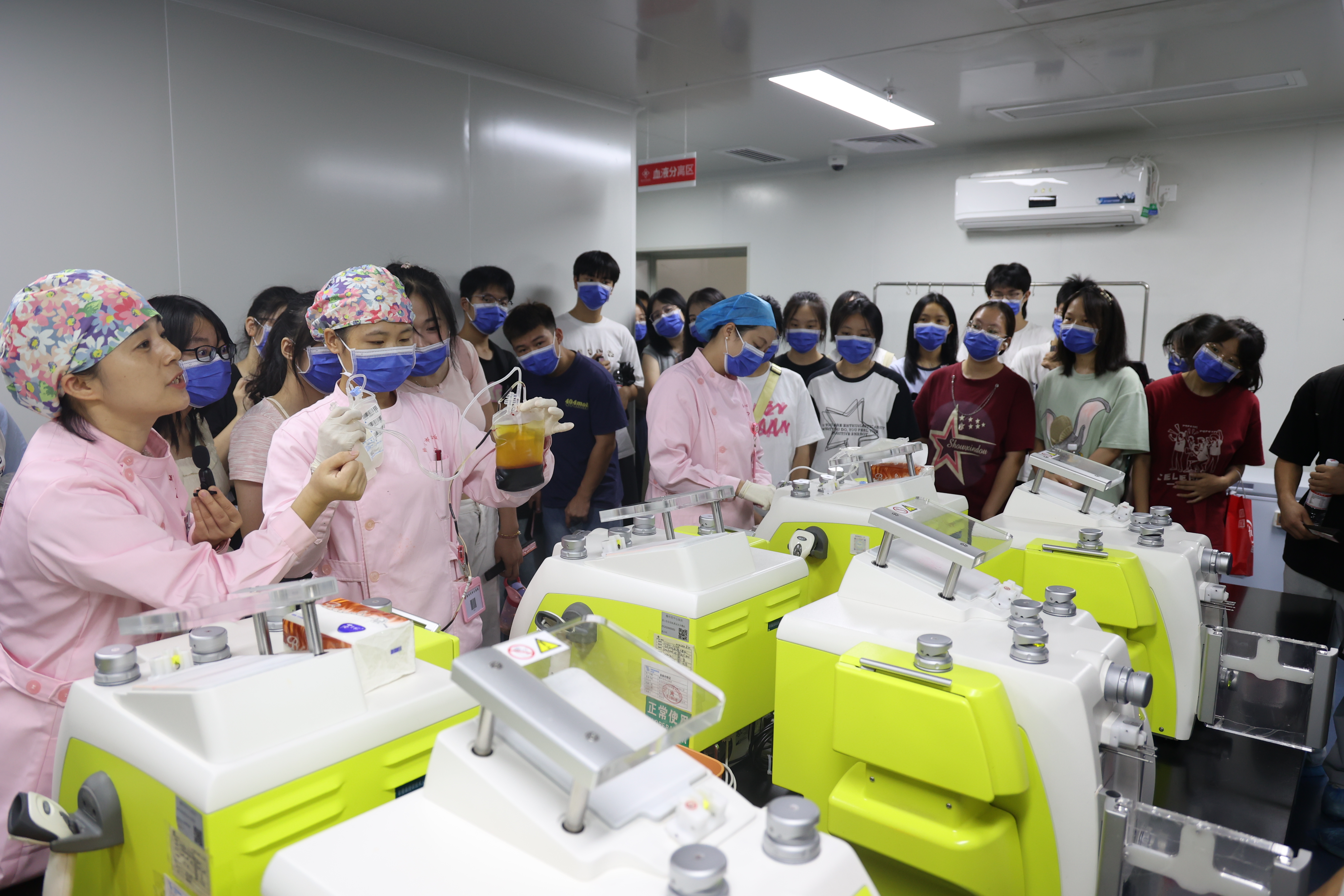 同学们实地参观了供血科、机采科、成分科等业务科室,直观地了解了血液从采集、检测到储存的全过程,对血站的专业性和严谨性有了更深刻的认识。此外,市中心血站还专门为他们科普关于无偿献血的重要性和相关知识的讲解,深入了解了献血的历史、意义。