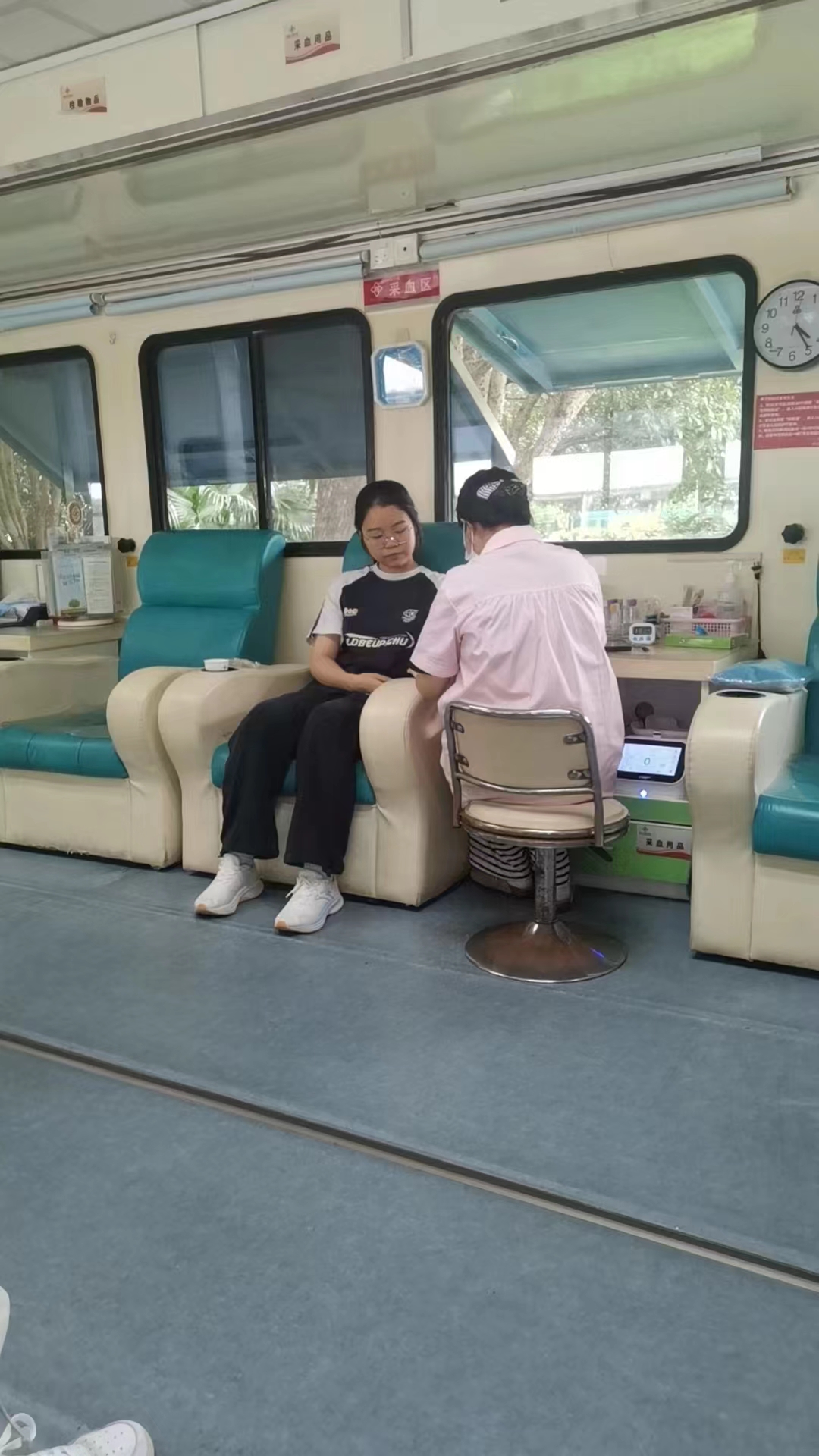 踏入献血车,护士微笑的向我迎来,一边引导我完成献血征询表,一边为我递上温水,在确认我了解献血须知及身体状况初步检查结果良好后,护士再为我进行了测心率、量血压、血液初检等一系列献血前流程。过程中,我的心跳愈发急促,脑海中浮现出“万一检查不合格?”的不安念头,好在一切指标正常。