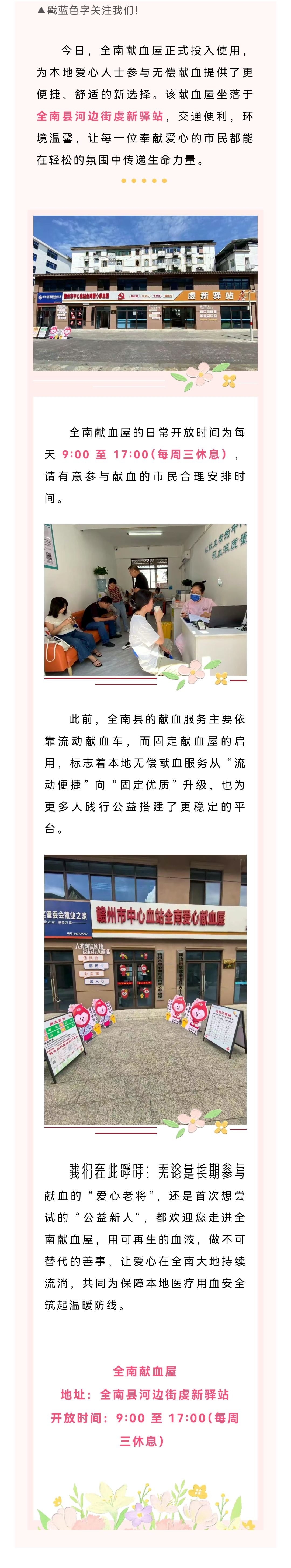 传递生命力量!全南固定献血屋今日 “上线”,位置、时间看这里
