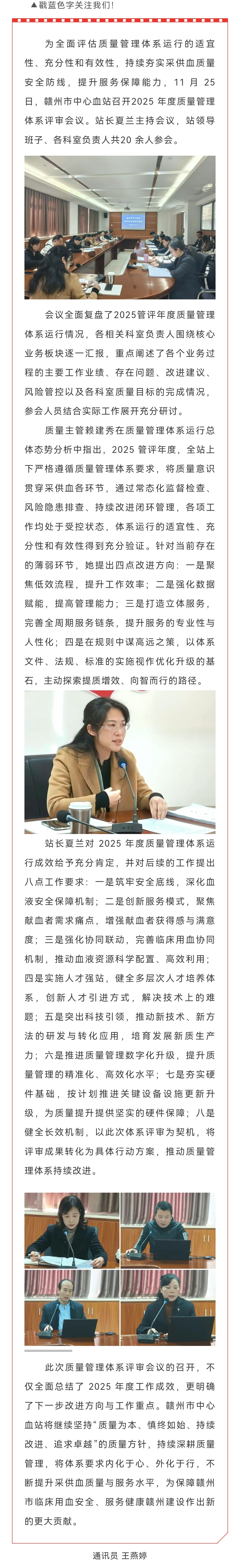 质量改进,我们一直在路上——赣州市中心血站圆满完成2025年质量管理评审工作