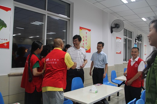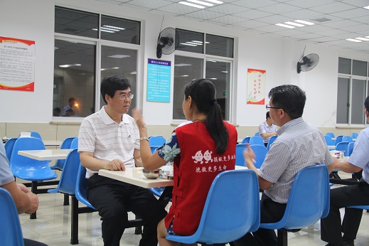 7月7日晚8点,江西省副书记、赣州市委书记李炳军一行来到赣州市中心血站食堂,看望及慰问刚完成机采献血和志愿服务活动正准备吃工作餐的6名无偿献血志愿者,并与他们一一握手。