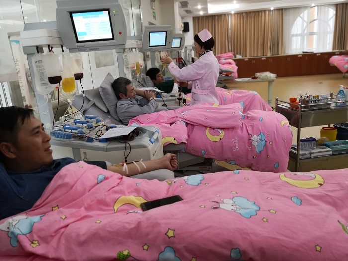 一早,看着窗外的雨越下越大,工作人员心急如焚,想着机采血小板A型临床需求量特别大,这样的天气情况下,今天可能很难招募到爱心献血者,怎么办才好呢?经过一番电话招募后,没想到很多老献血者竟然冒着大雨纷纷的赶到机采室献出自己的热血。他们说今天是雷锋日,雷锋精神,人人可学,奉献爱心,处处可为,积小善为大善,善莫大焉。当病人需要时,献出一份爱,奉献自己的一份力量,社会将变得更美好。他(她)是爱心奉献的前行者;引领者,为他(她)们的爱心奉献点赞。当天共有23名机采献血者成功献血、其中A型20个治疗量,B型2个治疗量,O型20个治疗量,AB型2个治疗量。