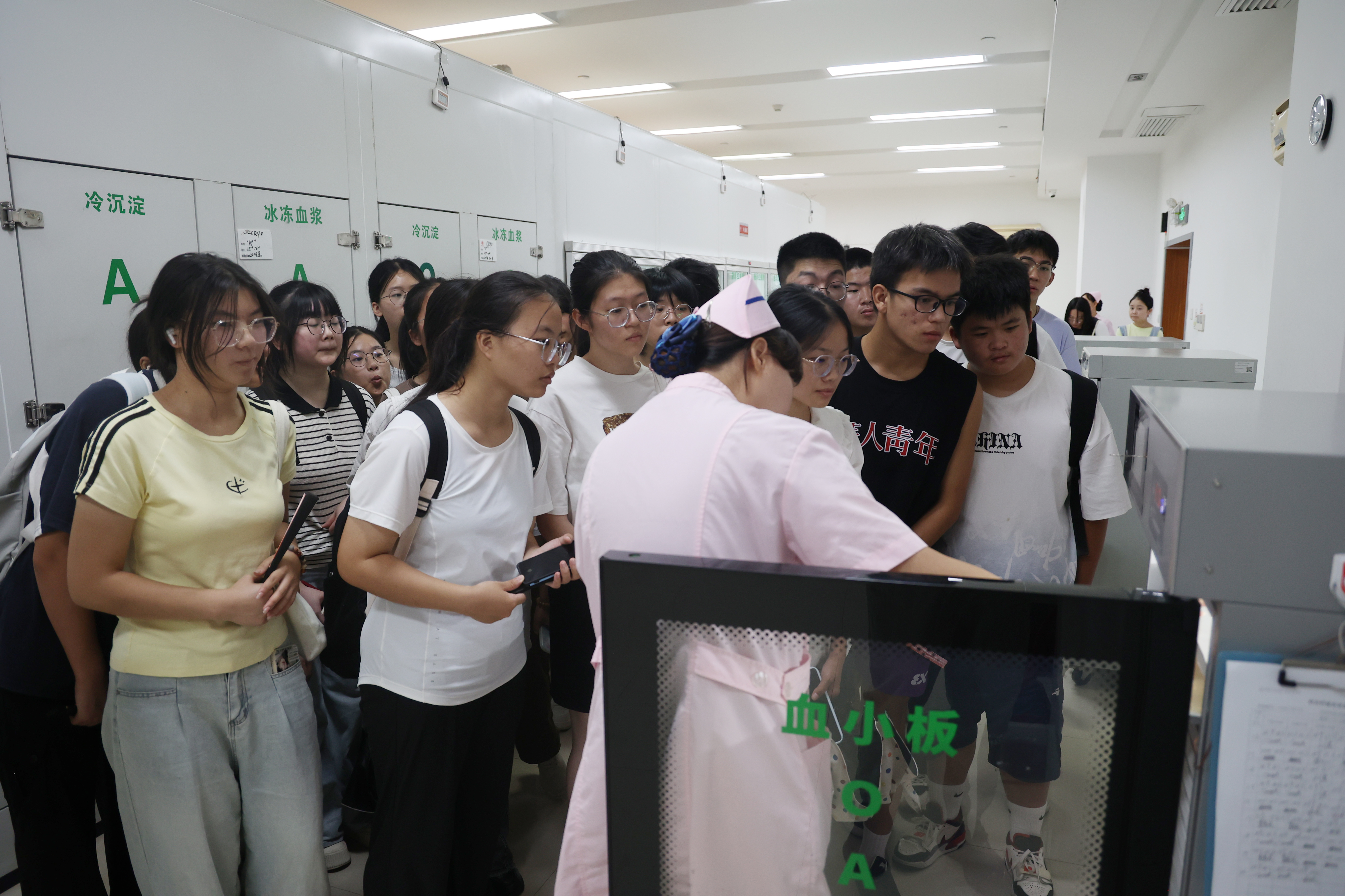同学们实地参观了供血科、机采科、成分科等业务科室,直观地了解了血液从采集、检测到储存的全过程,对血站的专业性和严谨性有了更深刻的认识。此外,市中心血站还专门为他们科普关于无偿献血的重要性和相关知识的讲解,深入了解了献血的历史、意义。